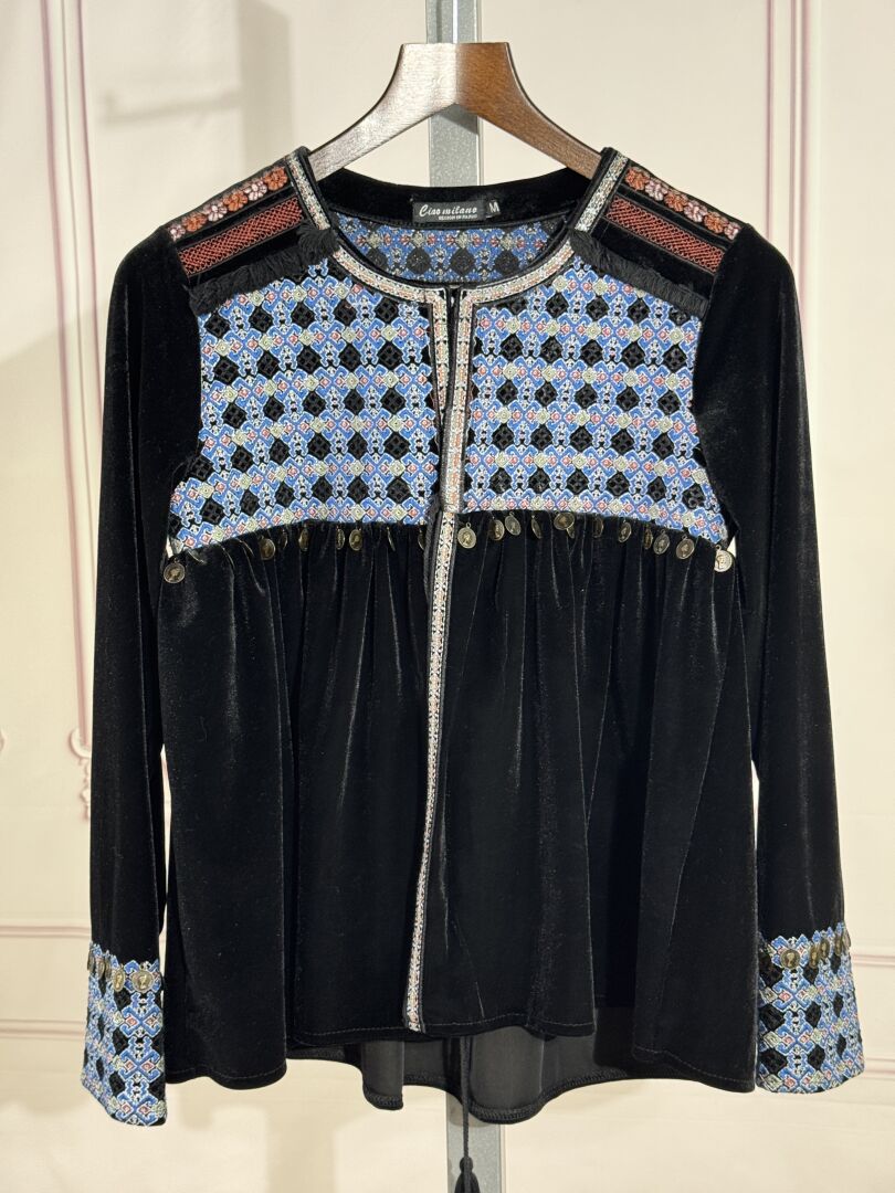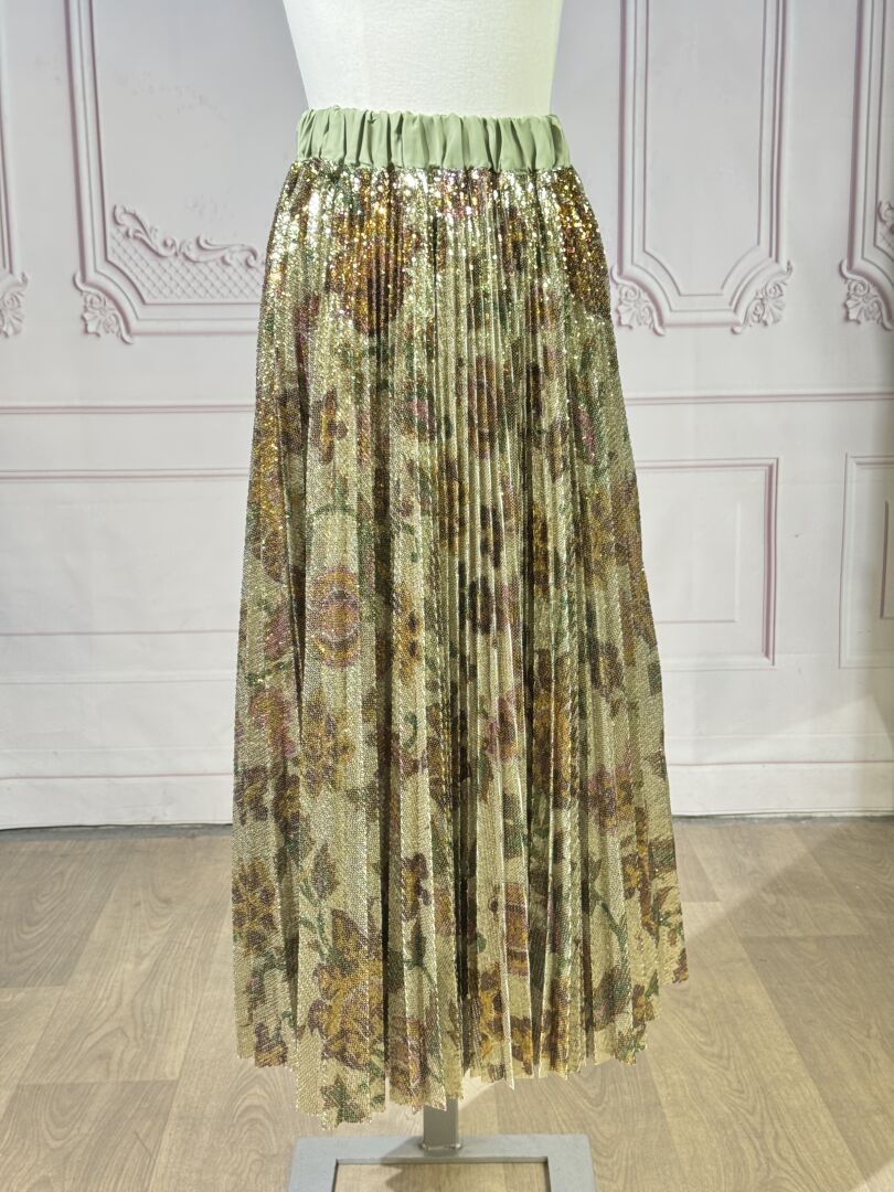 PETITE MENDIGOTE – Jupe midi modèle « Junon » plissée à sequins et motifs fleuris...