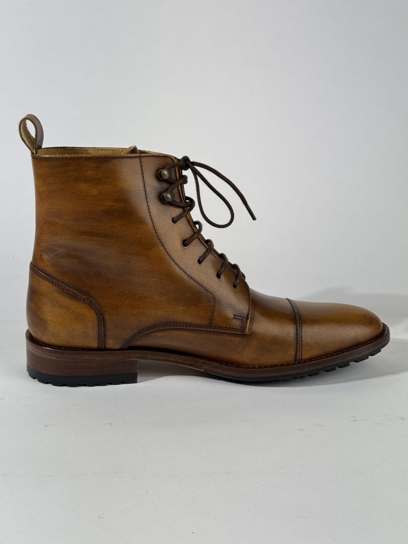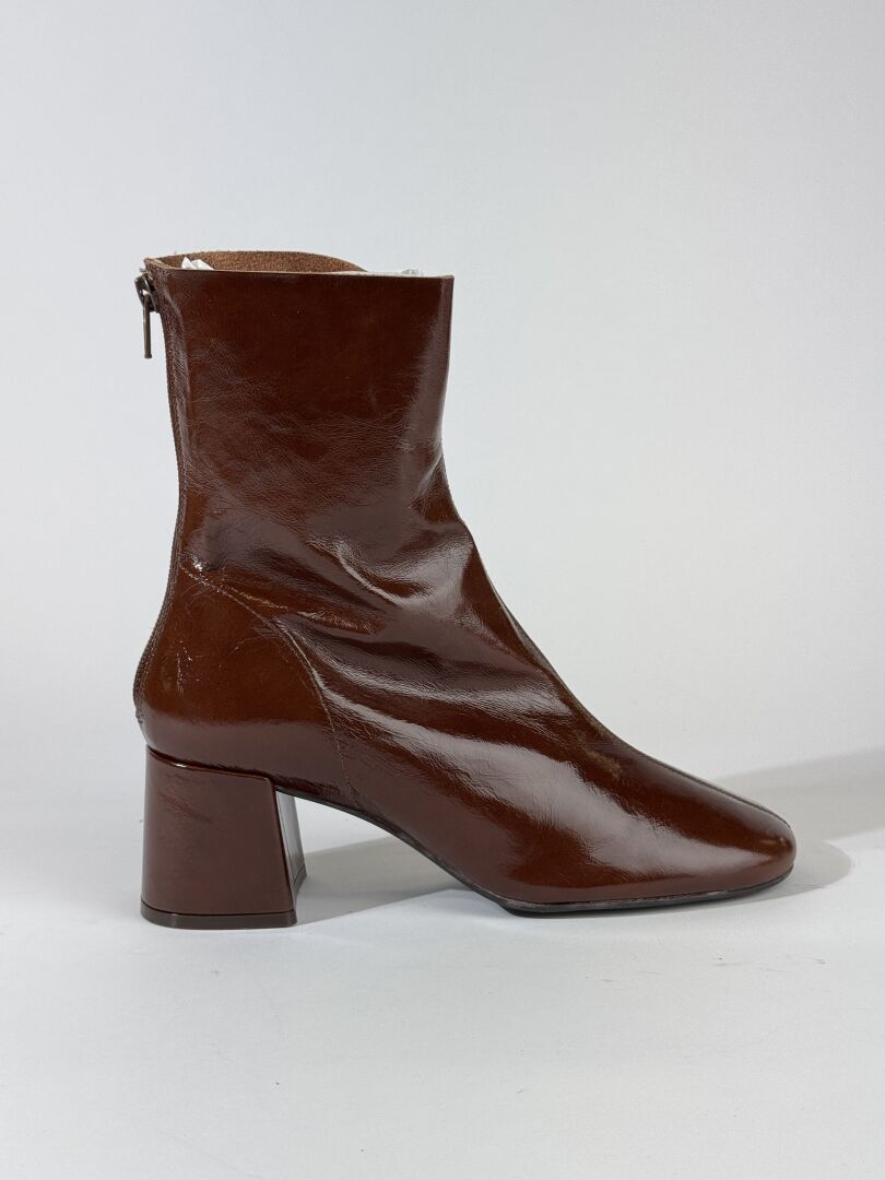 JONAK – Paire de bottines à talon, modèle « Donali », cuir brillant caramel. Boite...