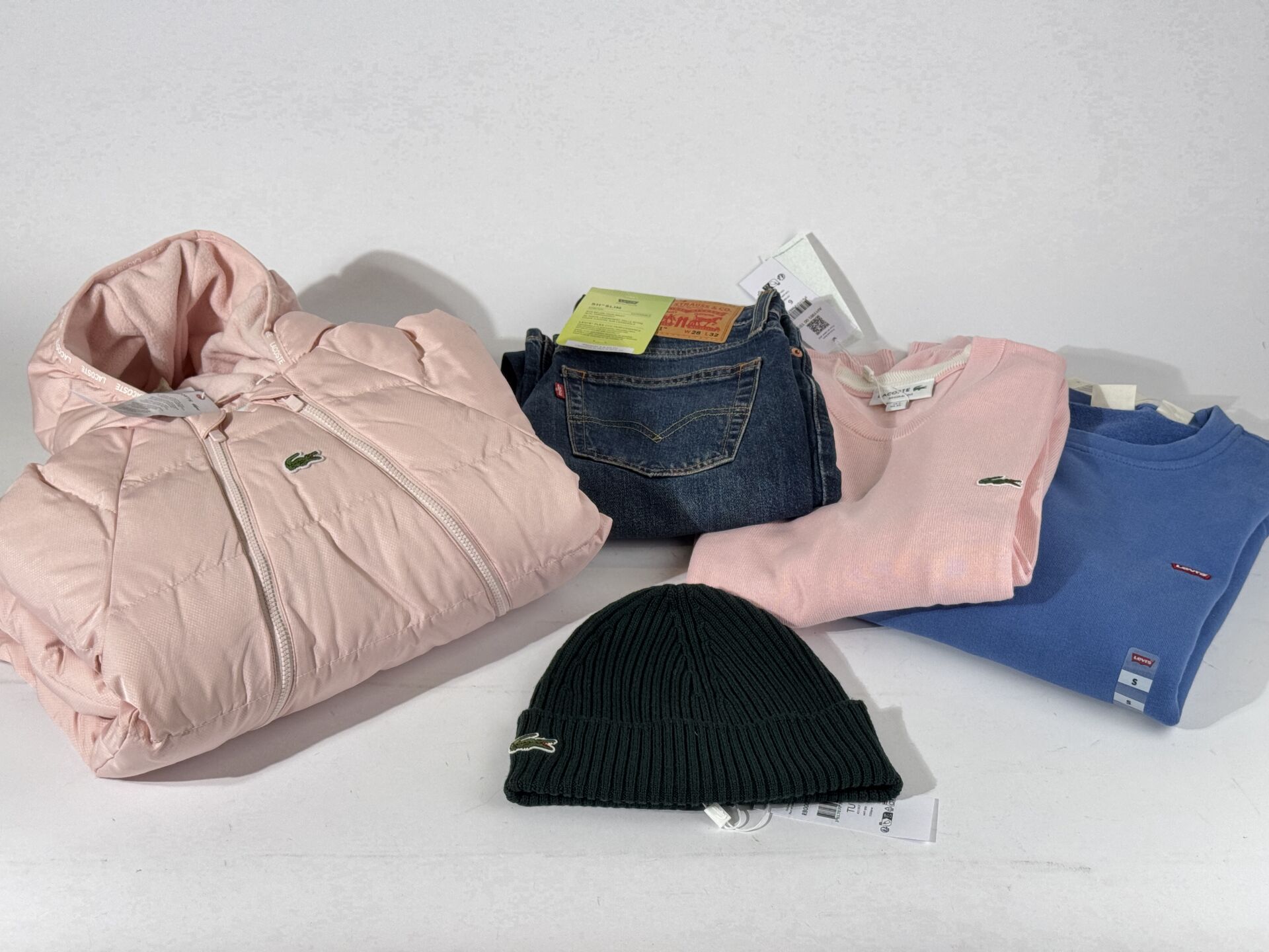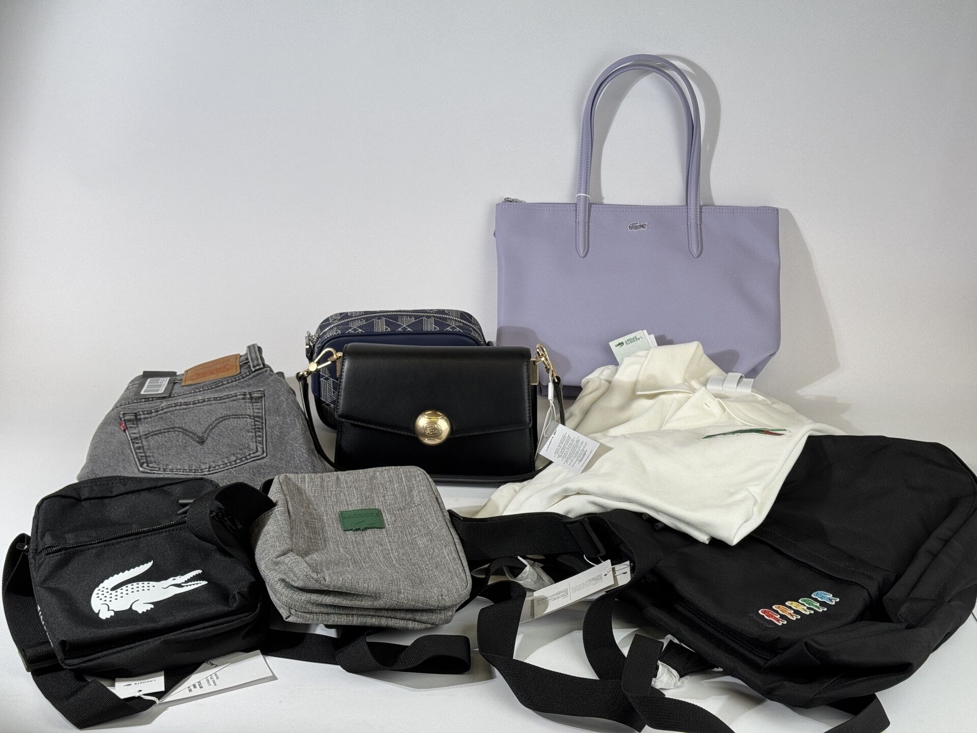Lot de 9 articles comprenant polo, sacs, sacoches, jean,…