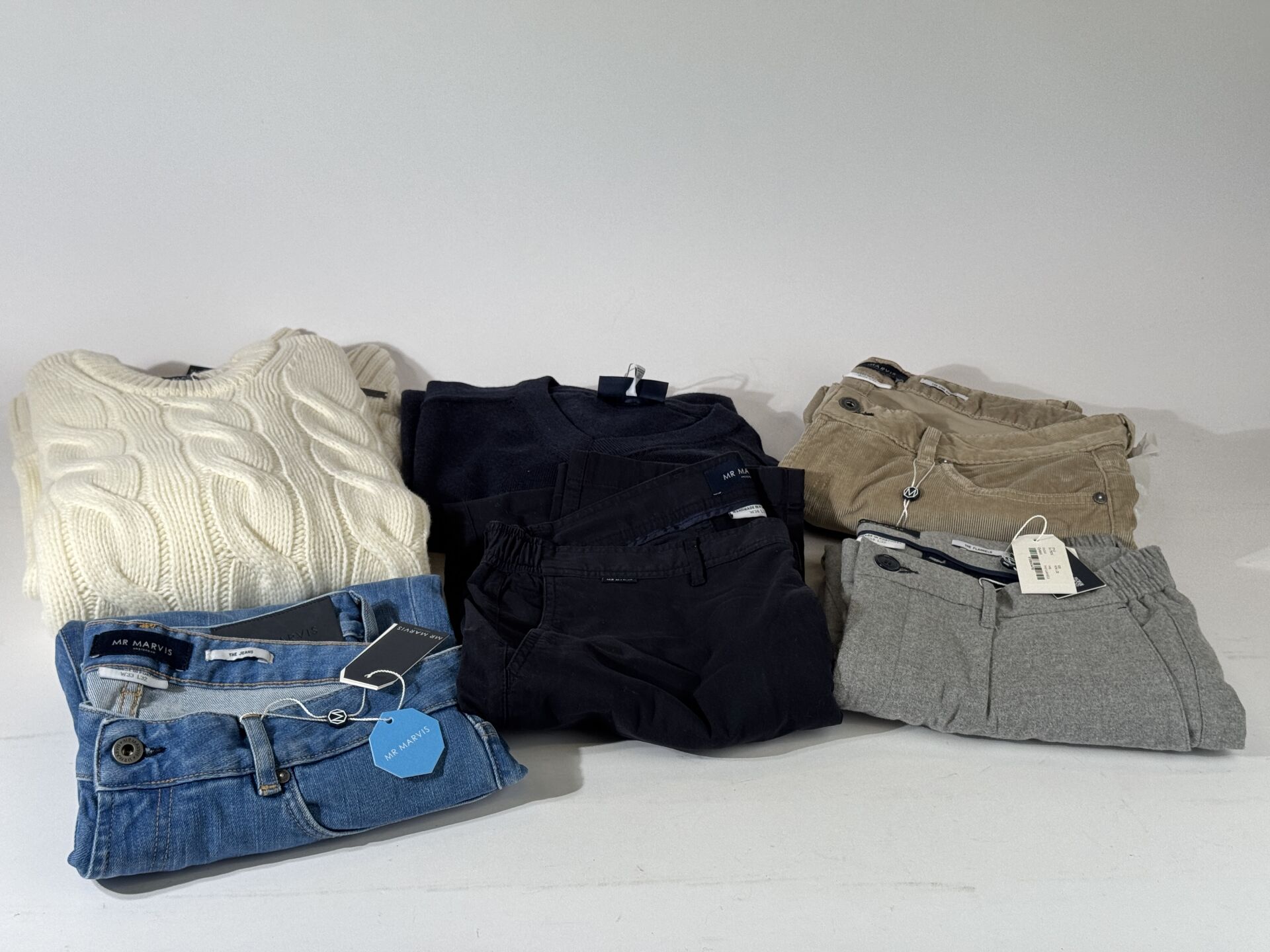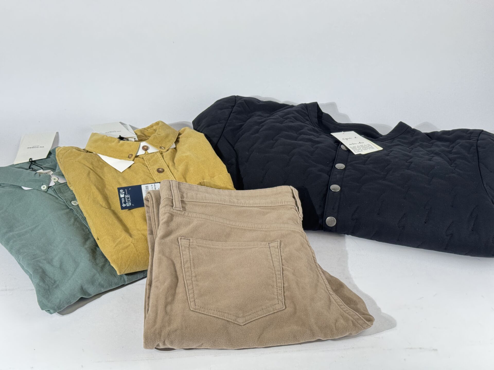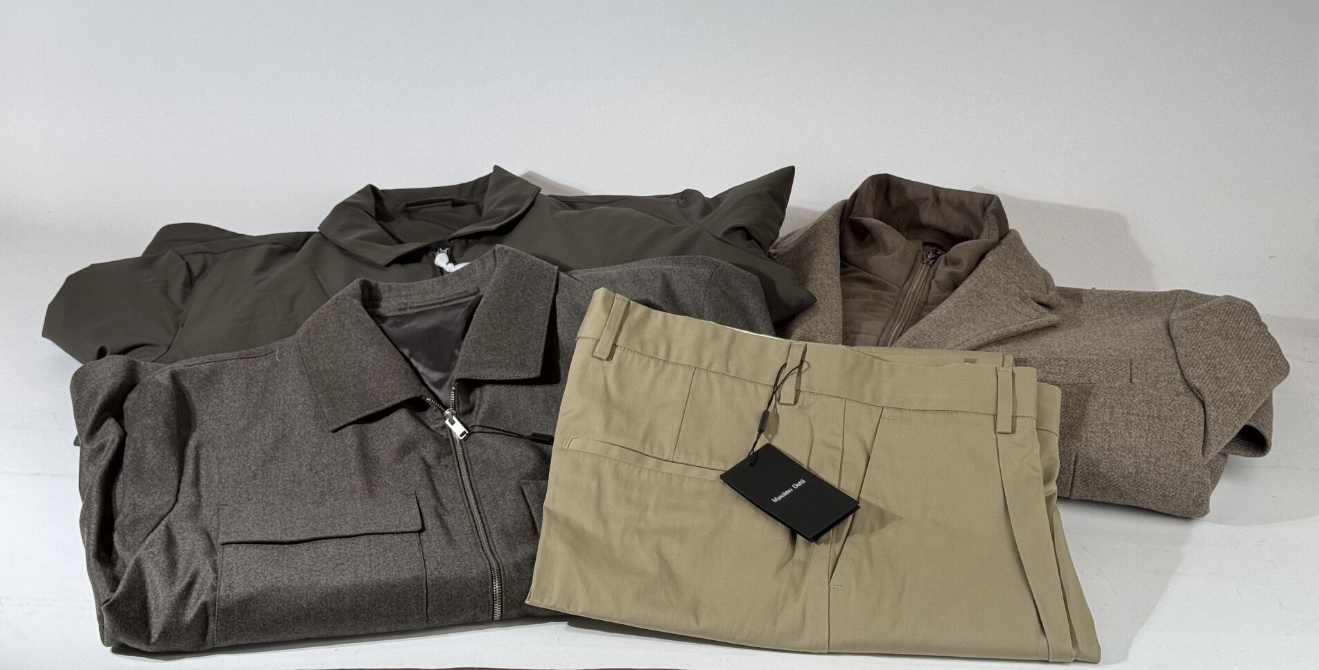 Lot comprenant 4 articles homme, dont pantalon, veste et manteau.