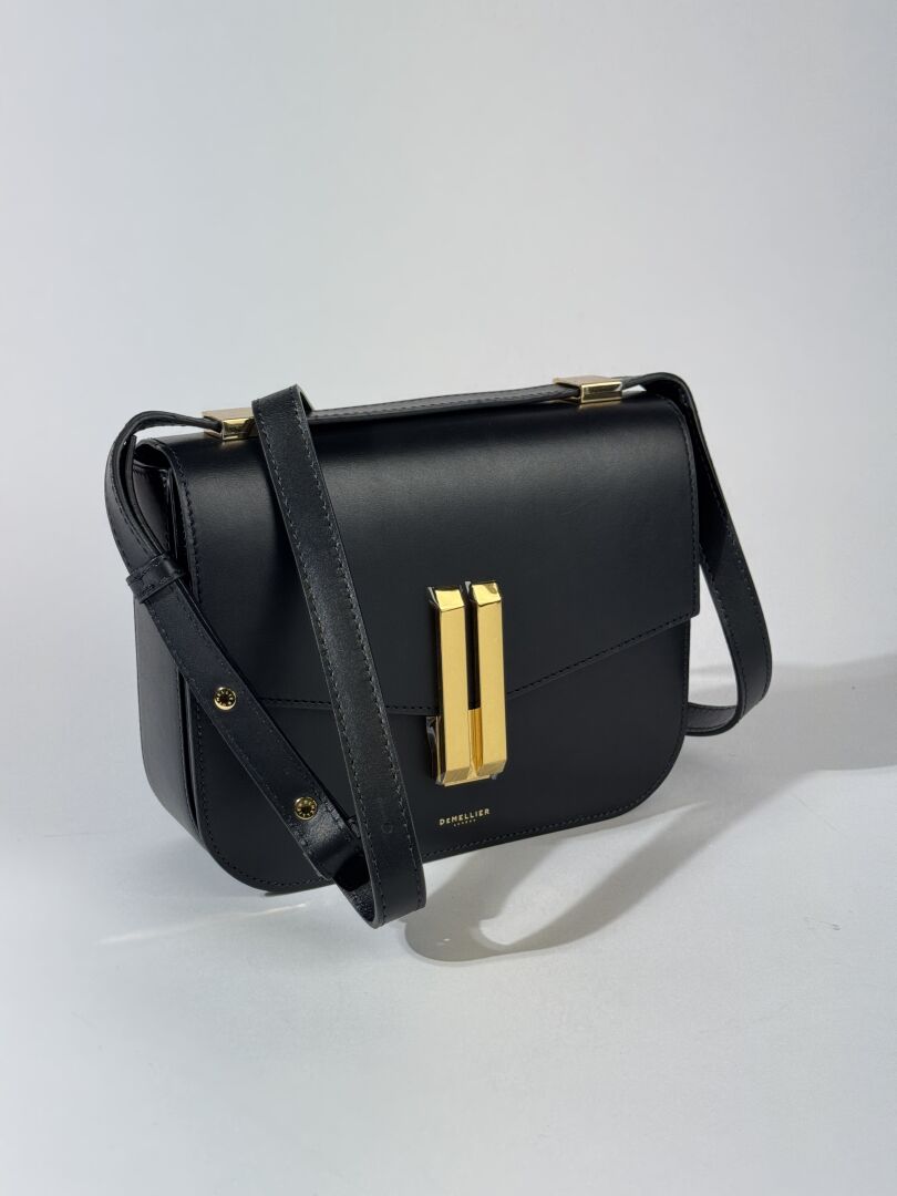 DEMELLIER – Sac à rabat modèle « Vancouver », cuir noir lisse, accastillage métal...