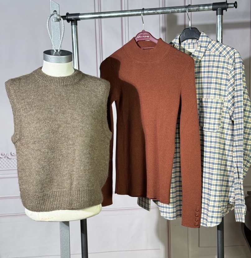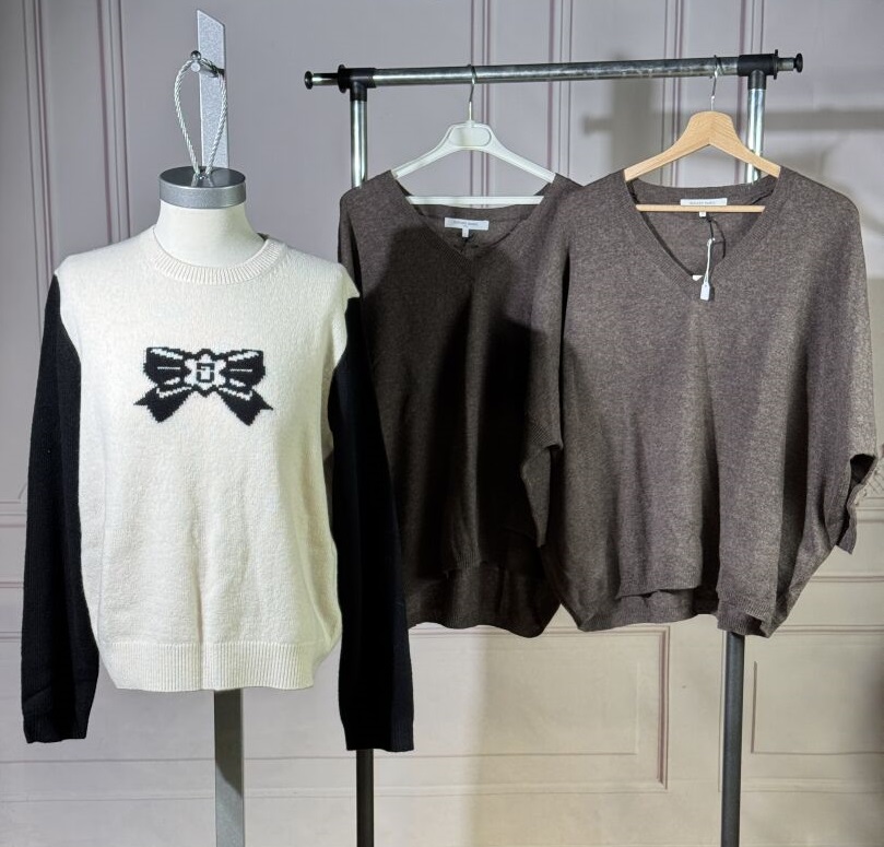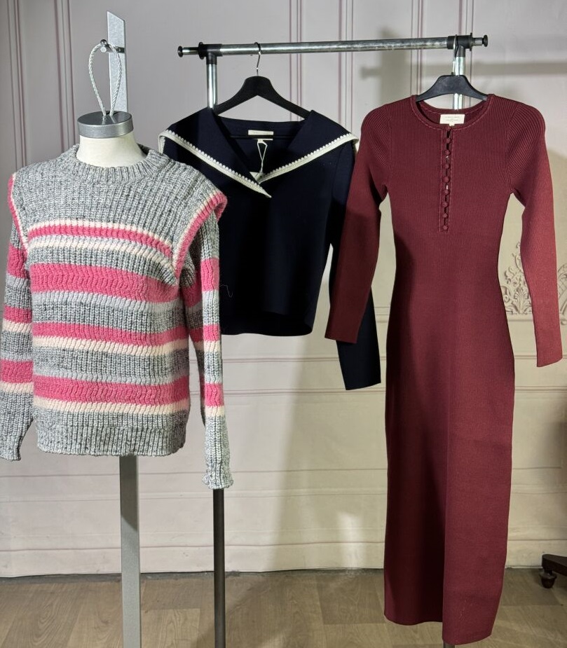 SEZANE – Lot comprenant un pull à manches longues en coton caramel (taille S), un pull...
