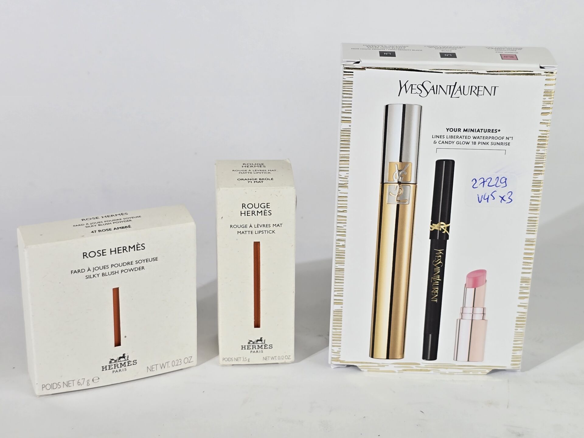 HERMES – Fard à joue 47 Rose Ambré. Poids : 6,7 gr et un rouge à lèvres rechargeable...
