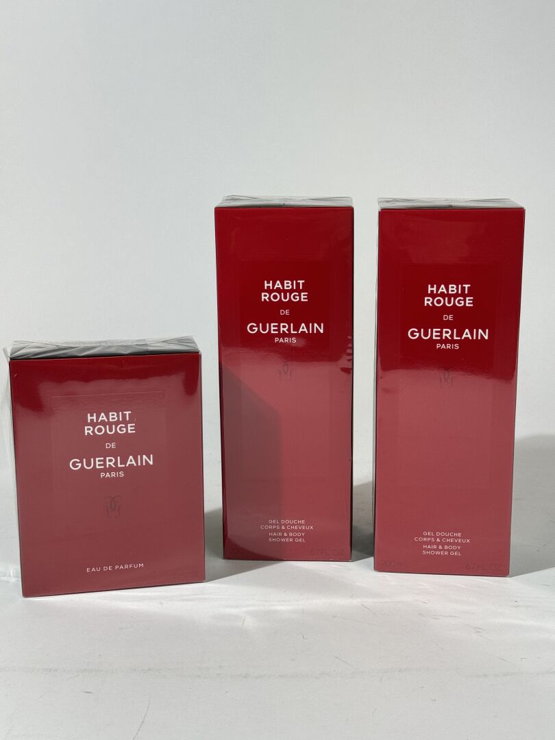 GUERLAIN – « Habit Rouge », eau de parfum 100 ml et 2 gels douche corps et cheveux en...
