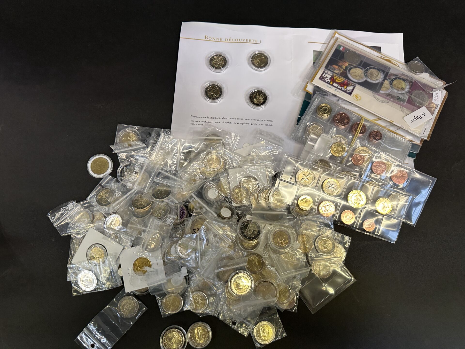 Ensemble comprenant 130 pièces de 2 euros (en grande partie commémoratives) et 9 séries...