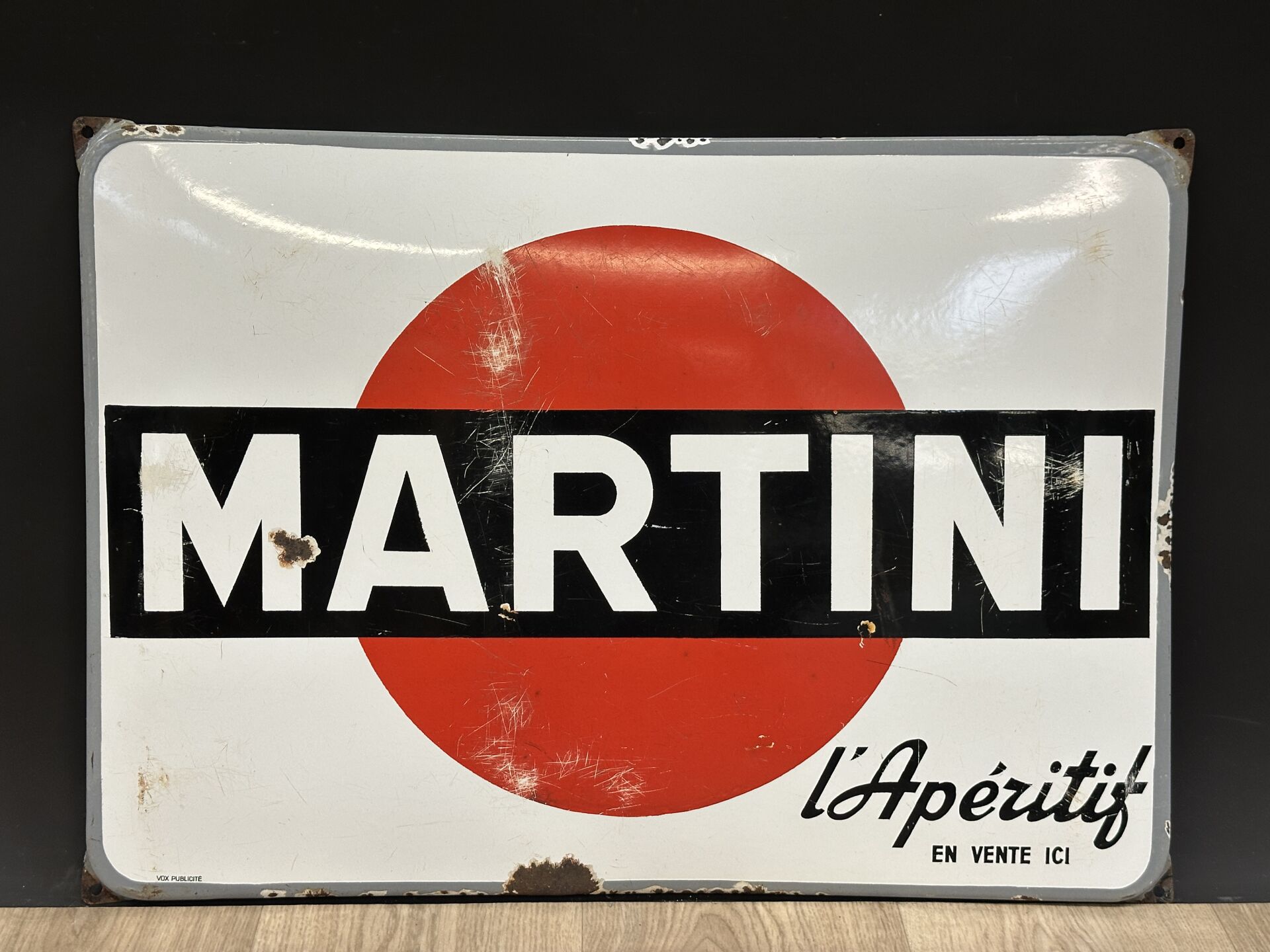 Plaque publicitaire en tôle émaillée à oreilles pour MARTINI « L’apéritif en vente...