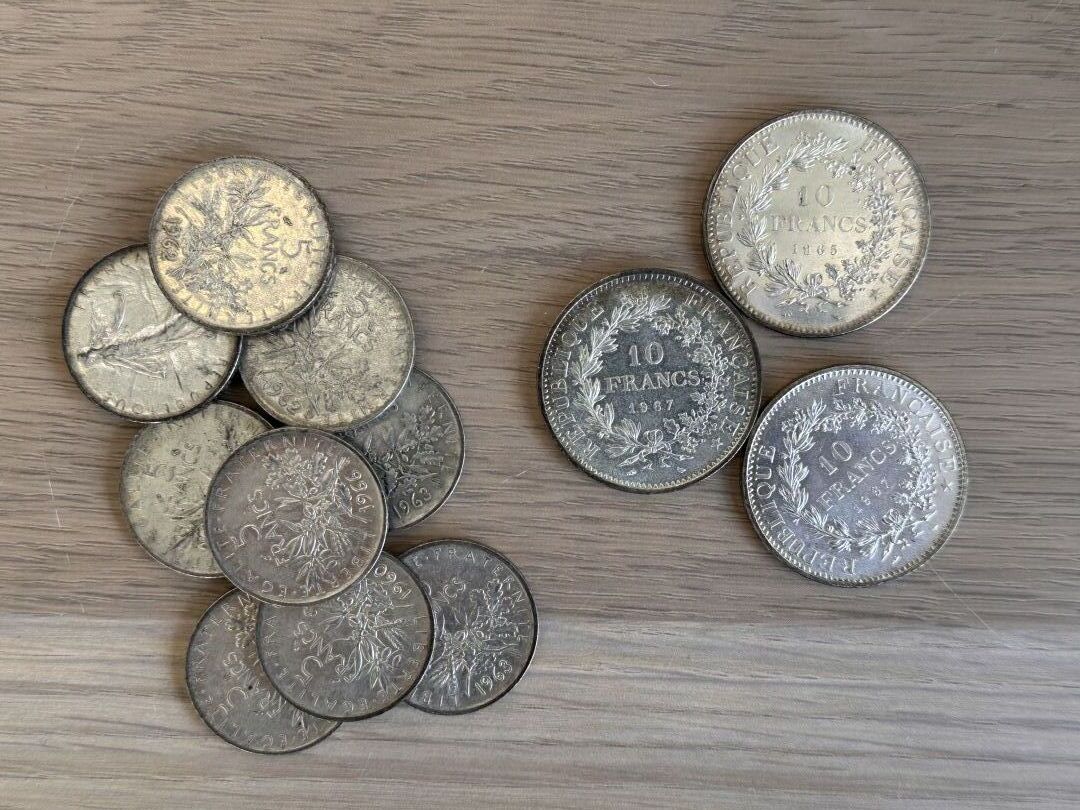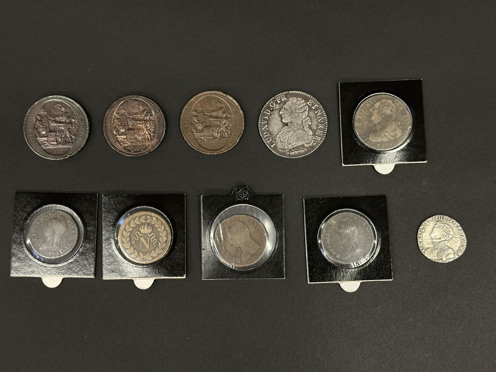 Vrac de monnaies françaises et du monde (dates, pays et matériaux divers).