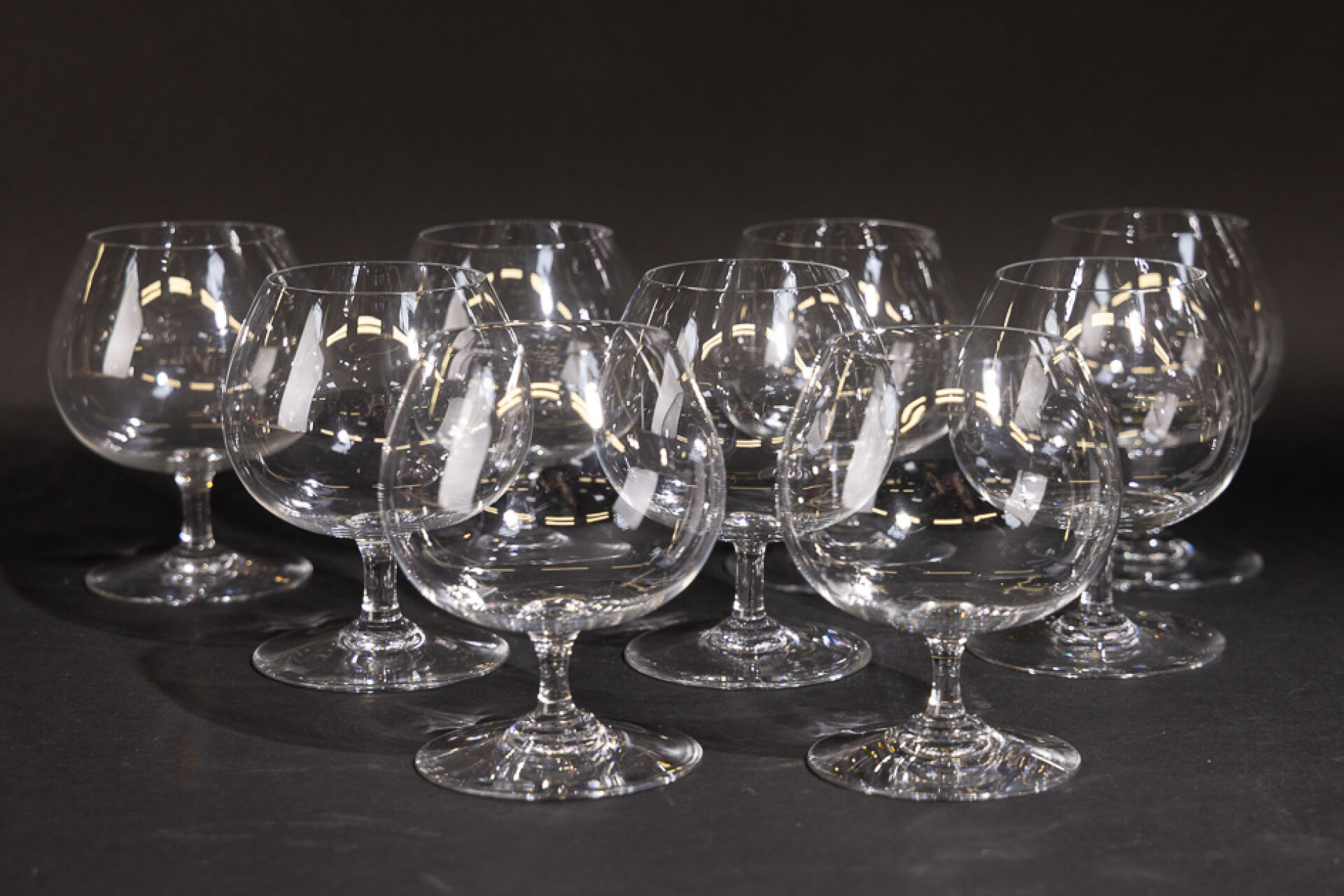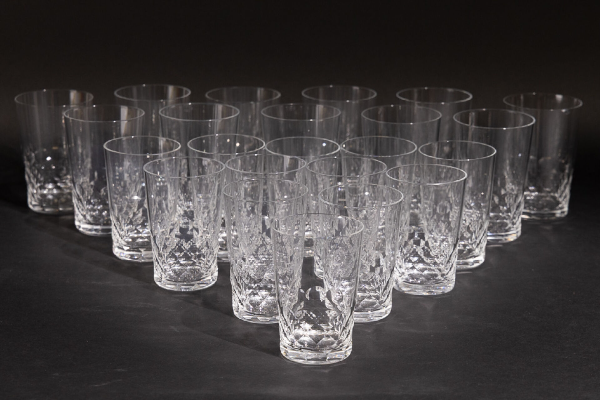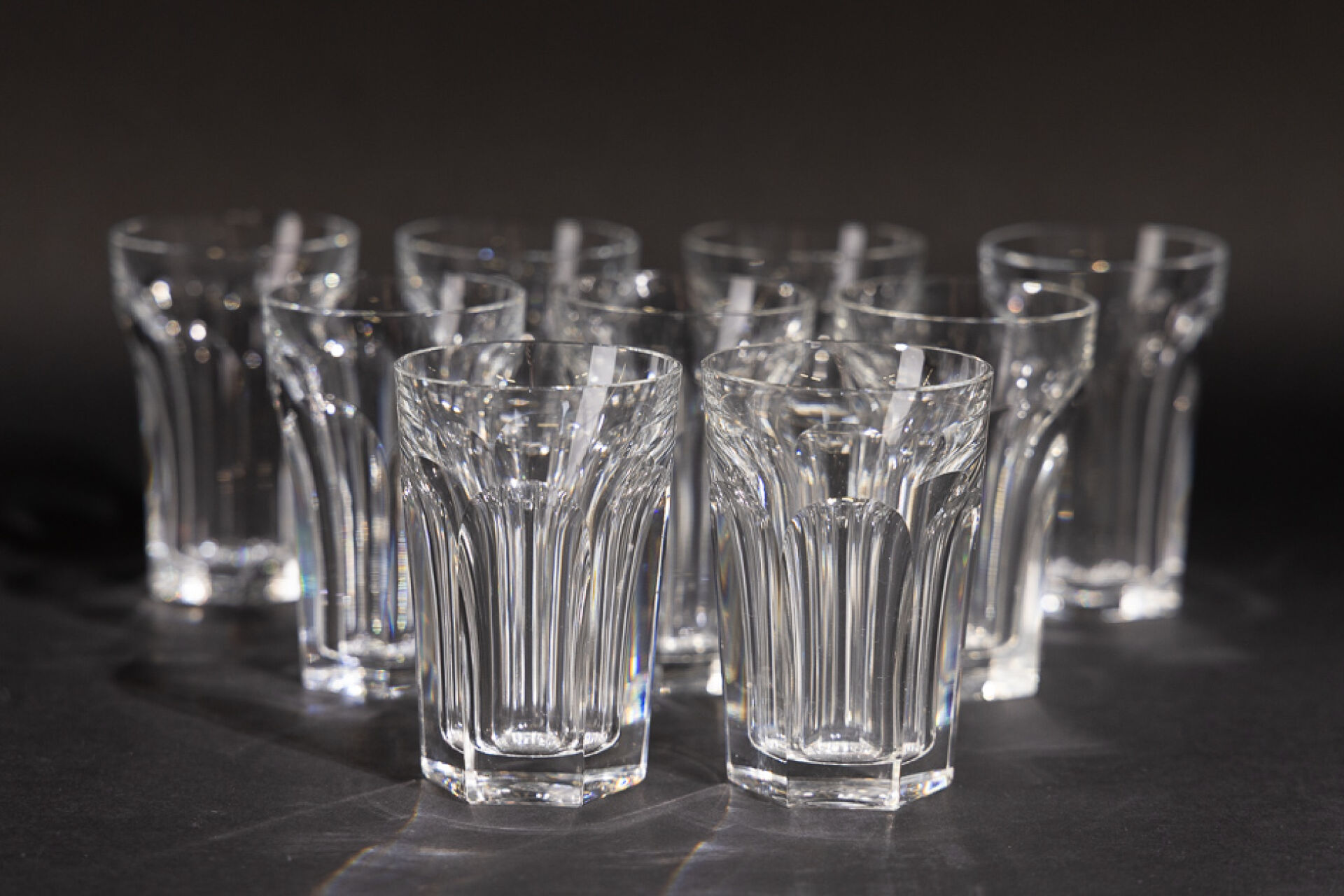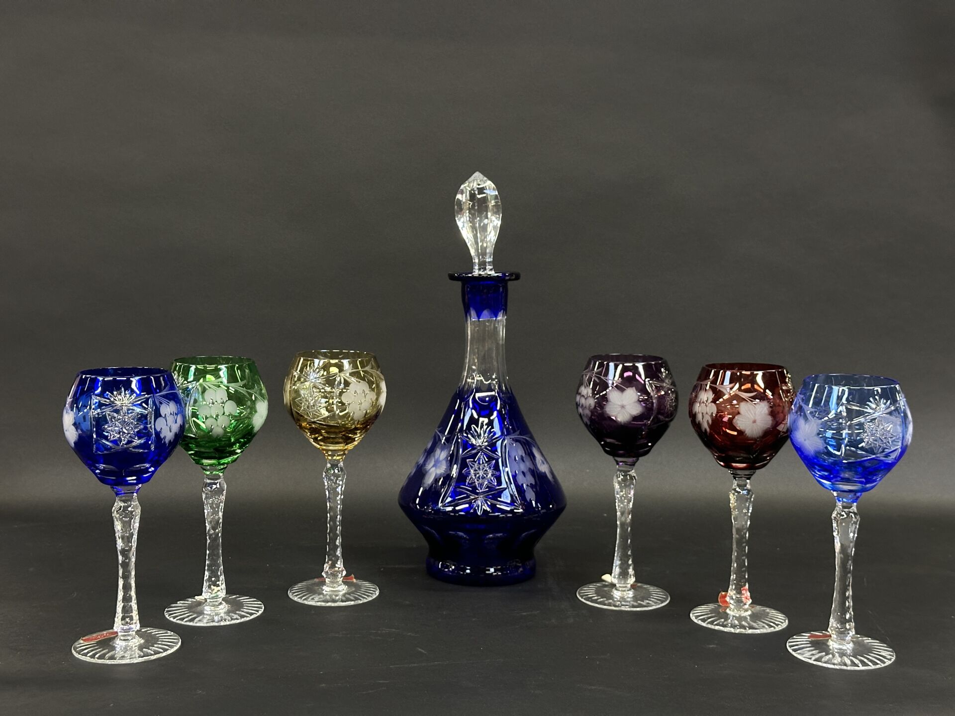 Réunion de verres en cristal taillé, différents coloris, (égrenures, éclats) comprenant : Estimation : 80 - 120 €