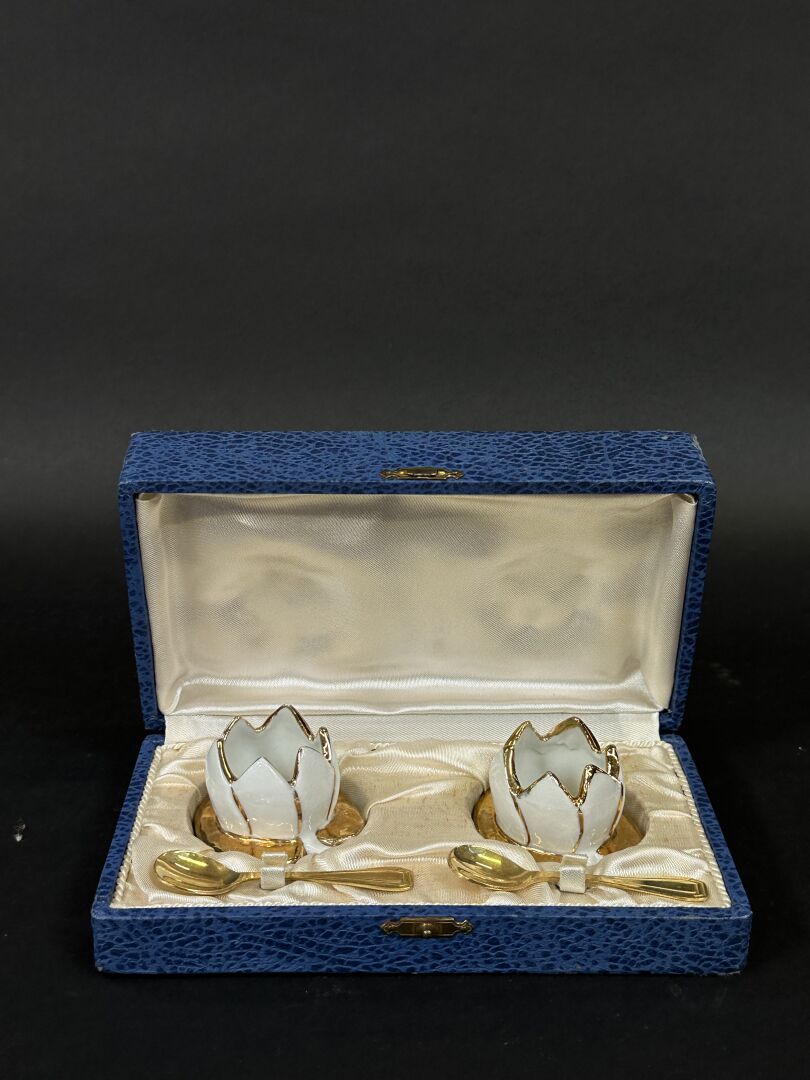 Suite de quatre salerons et leurs cuillerons en argent à décor de fleurs et feuillage de style...