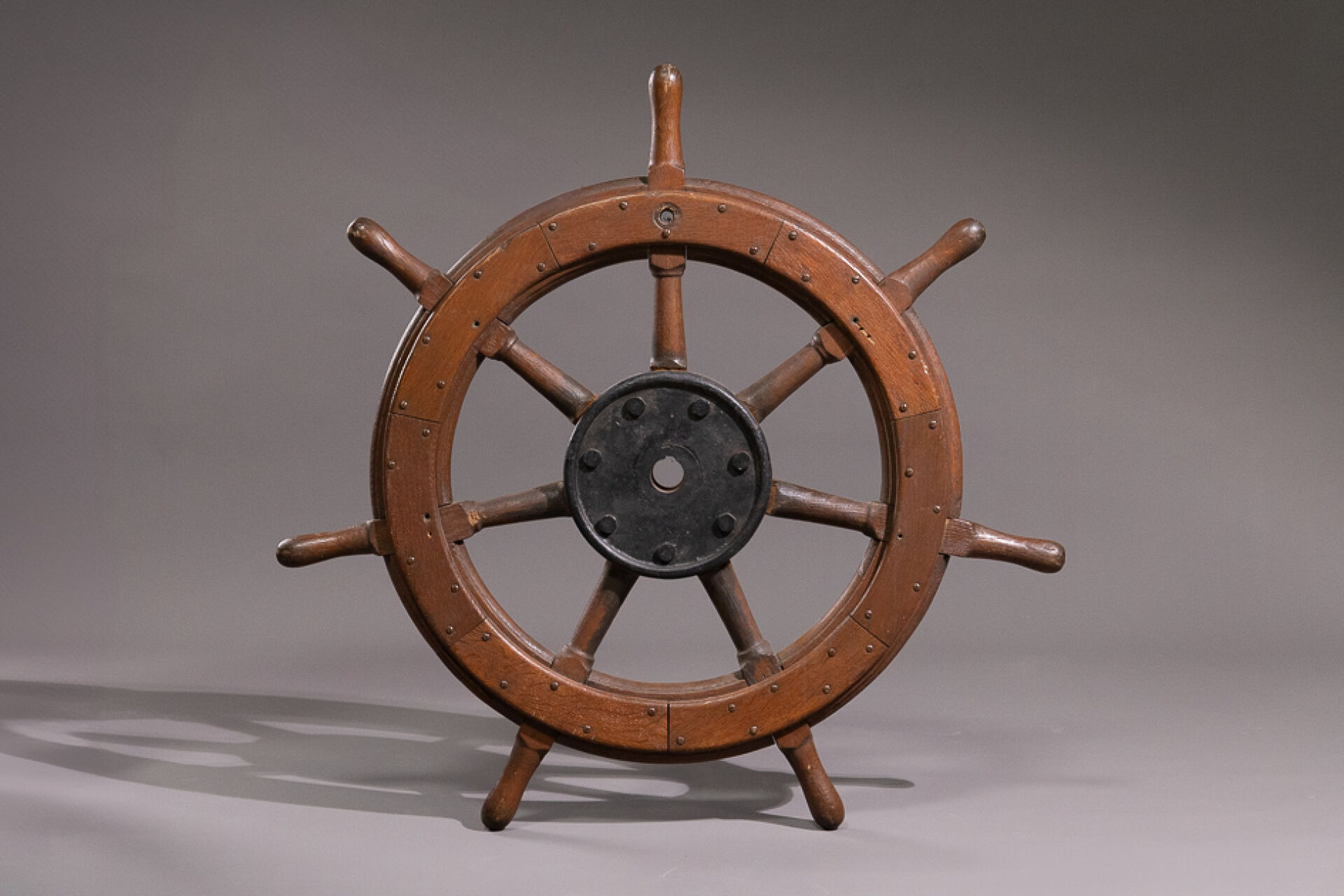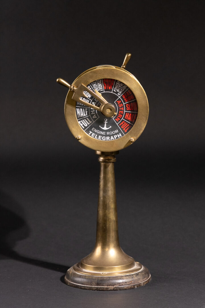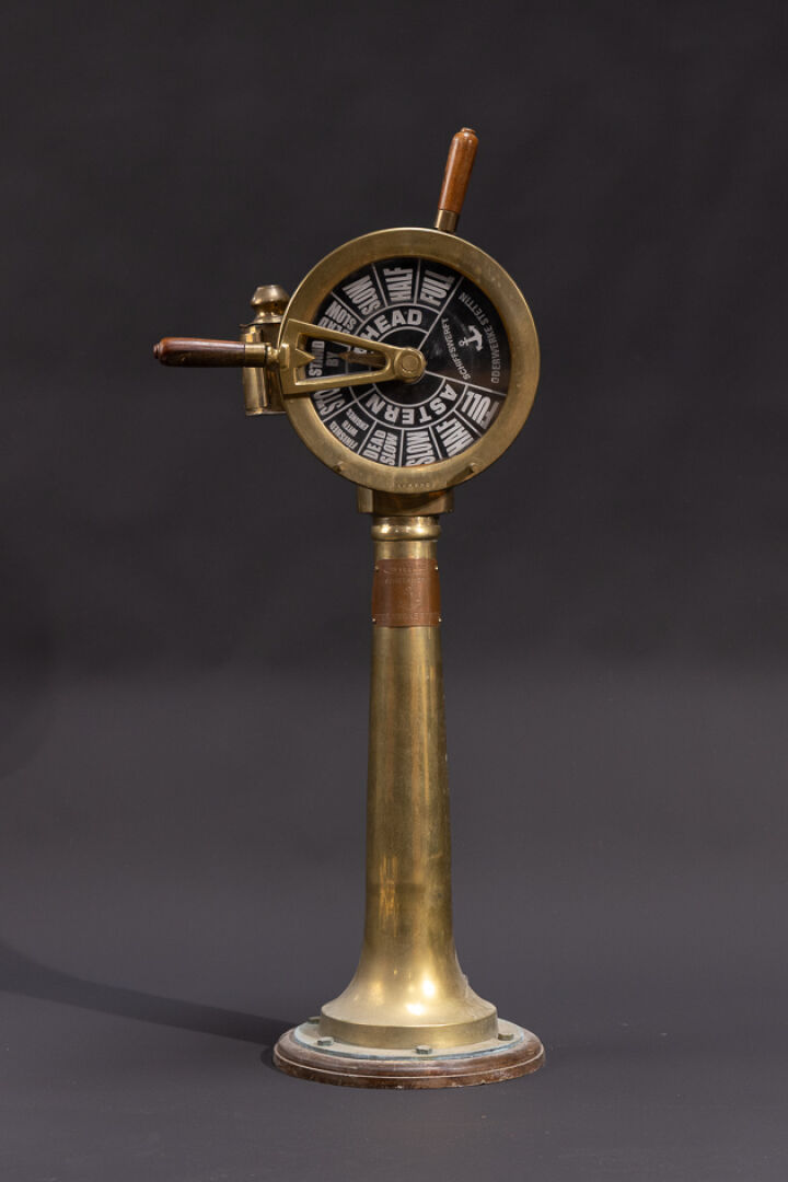 Transmetteur d’ordre en laiton doré, double faces à deux poignées, marqué « Engine...
