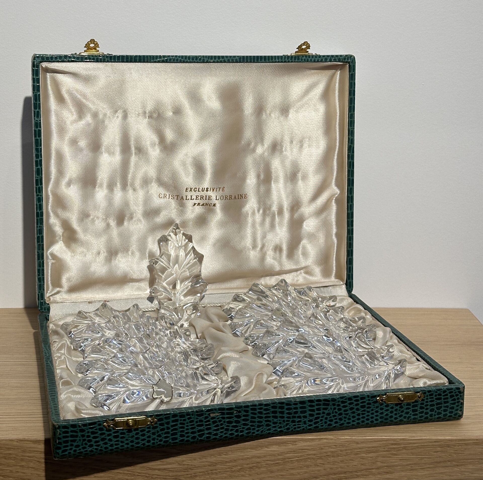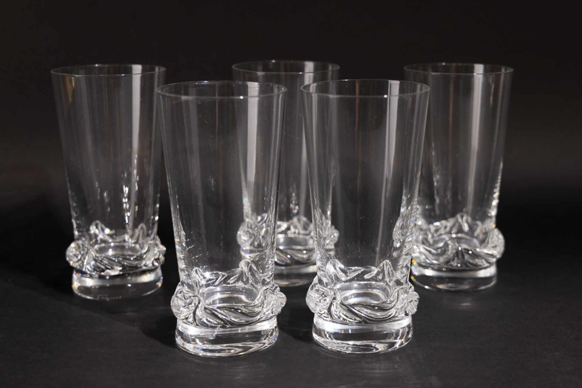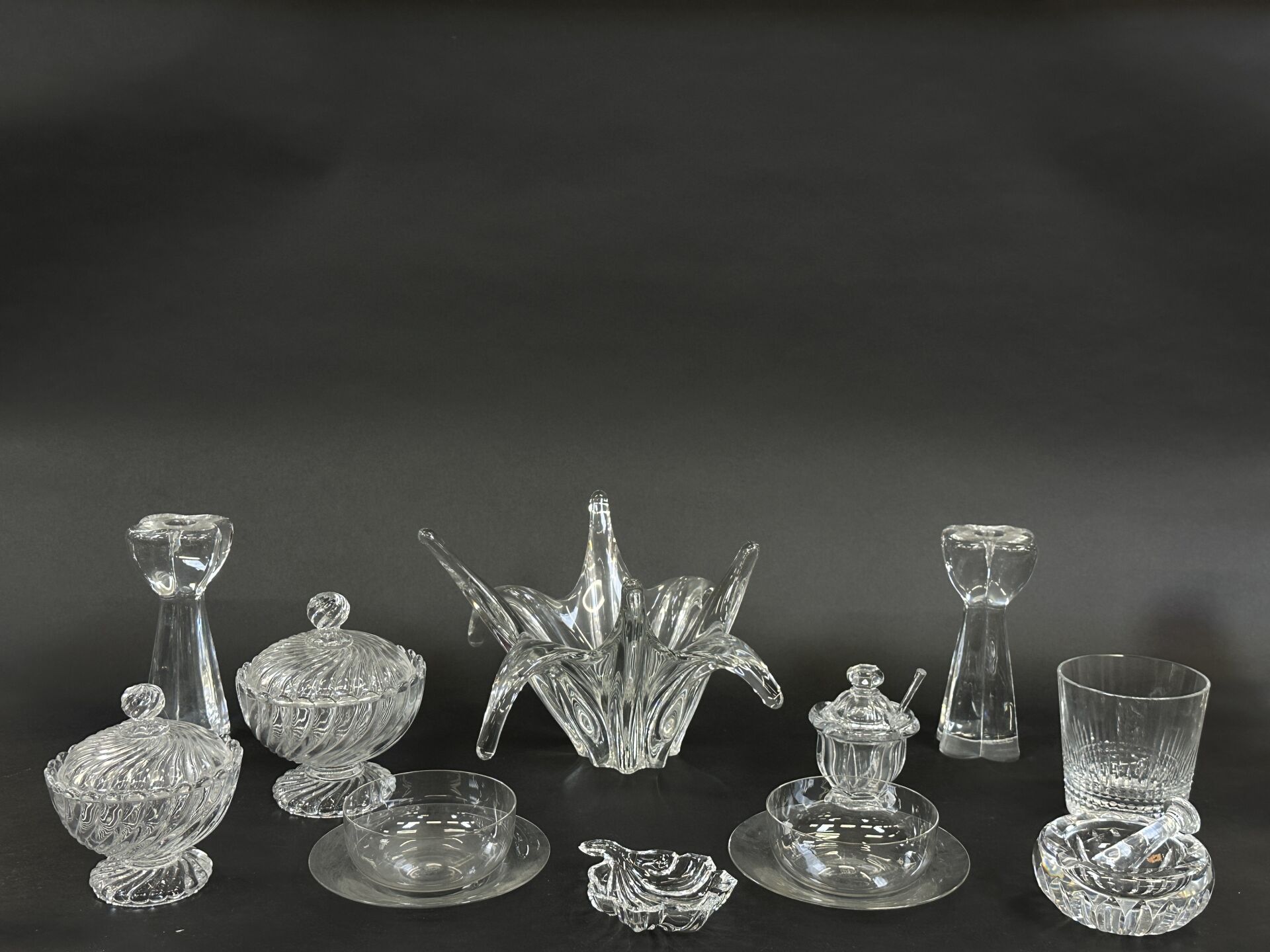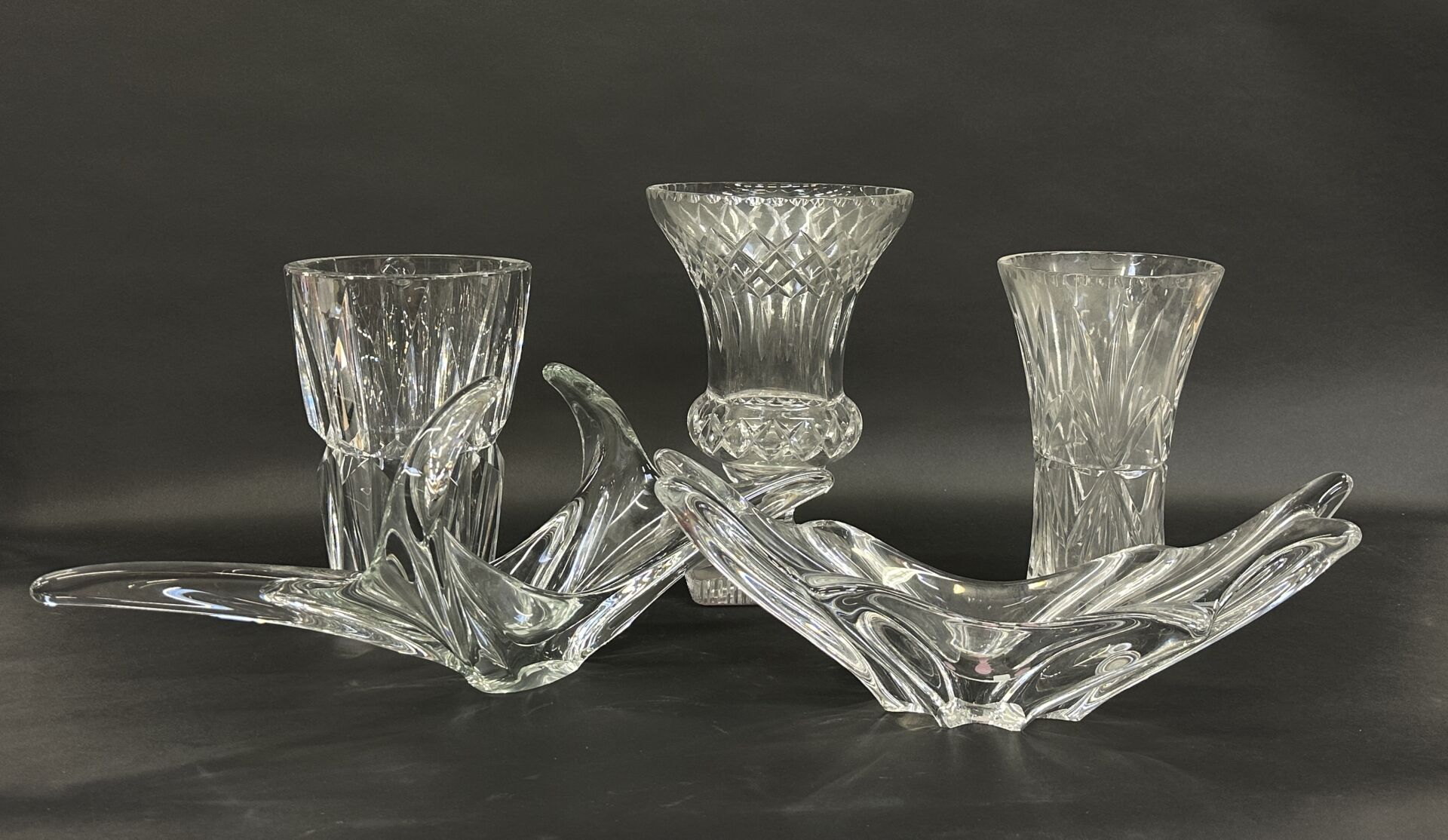 Réunion de cinq vases et coupes en cristal taillé ou verre dont un vase Cristallerie SAINT...