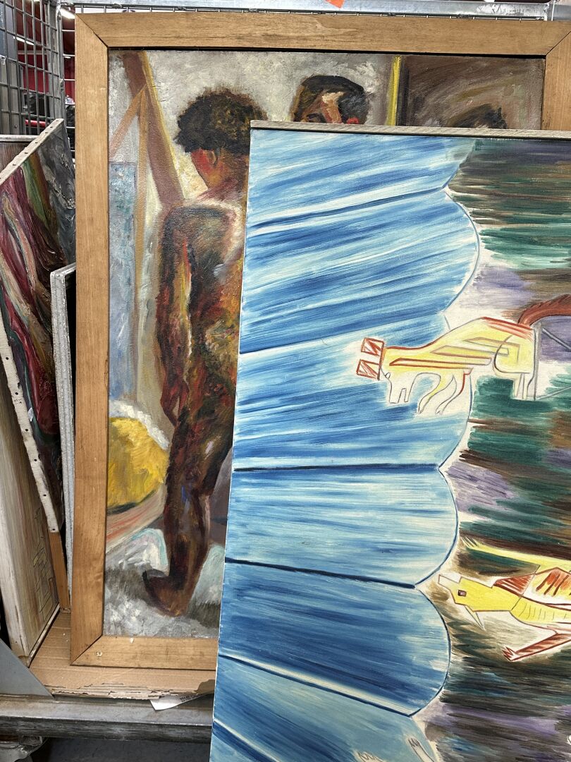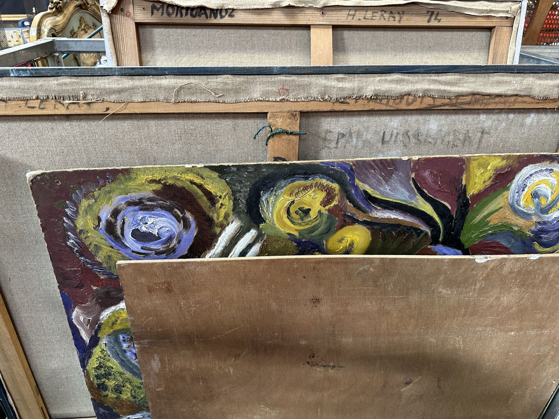 Réunion d’huiles sur toile et huiles sur panneau, cartons à dessins, toiles roulées de...