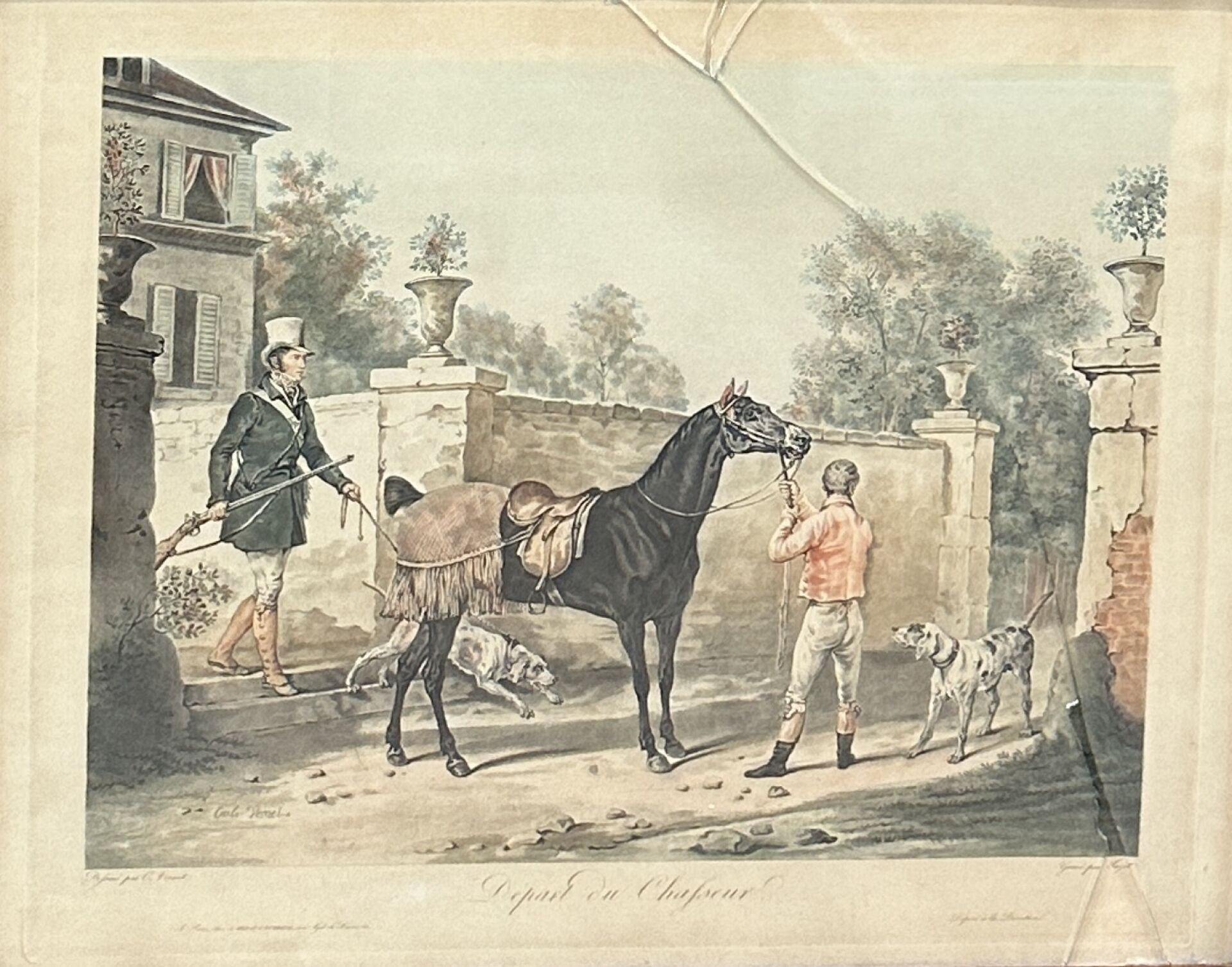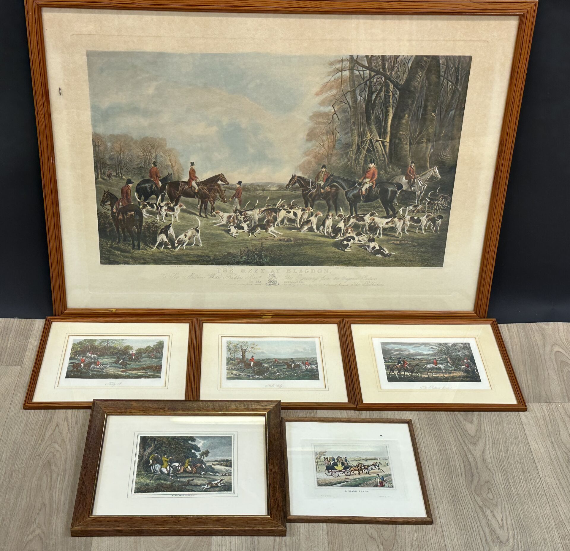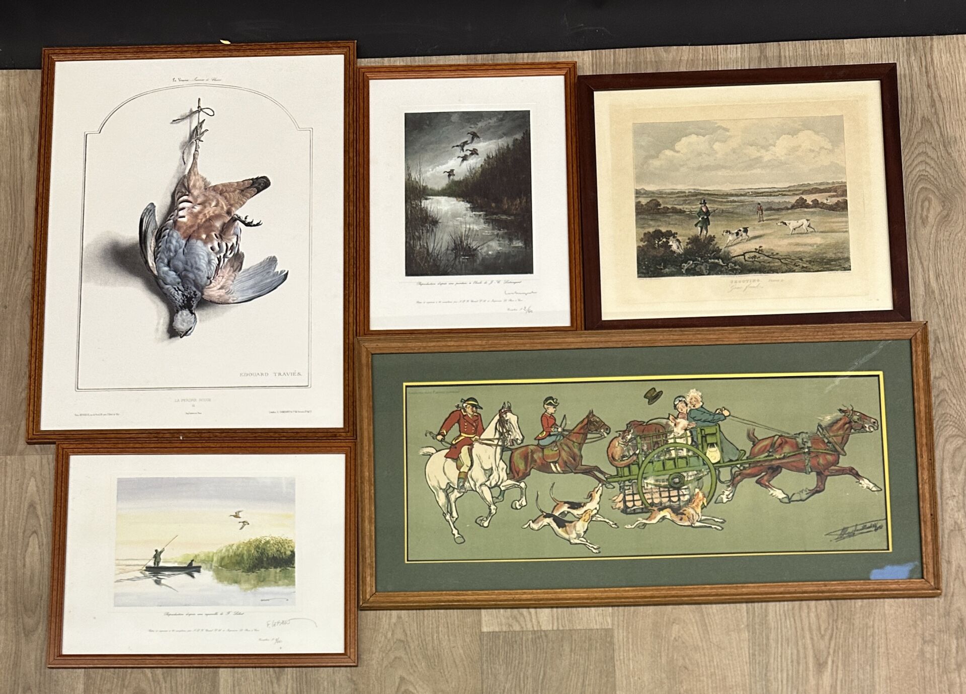 Réunion de six estampes anglaises sur le thème de la chasse (mouillures).