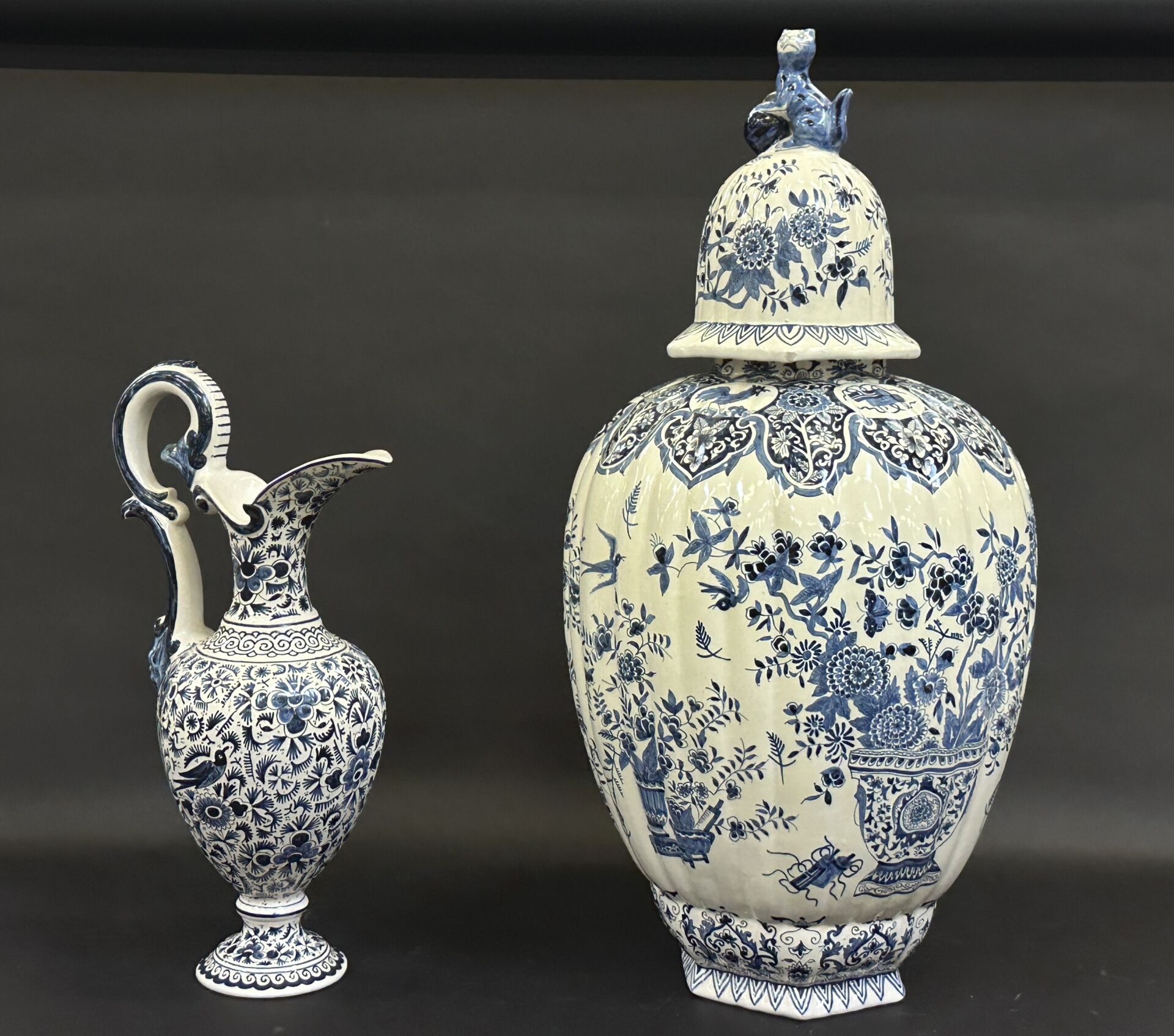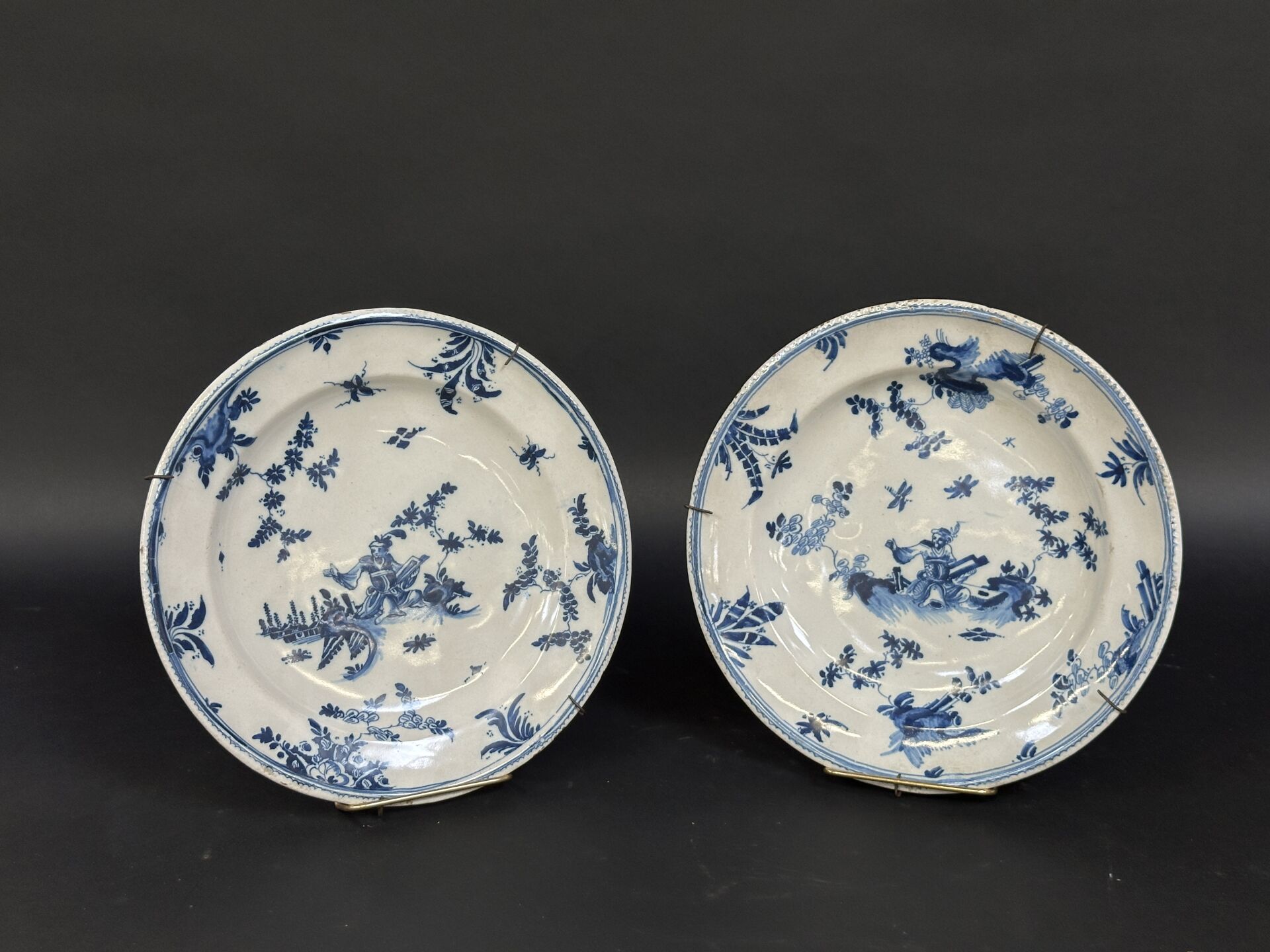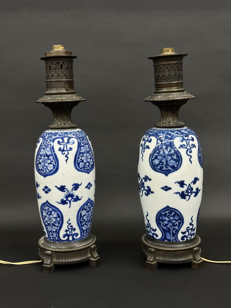 Paire de vases en porcelaine bleu blanc, de forme ovoïde, à décor de lambrequins ornés de...