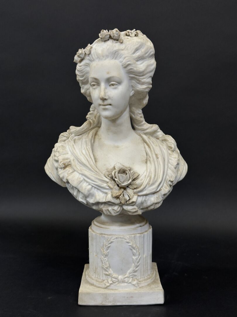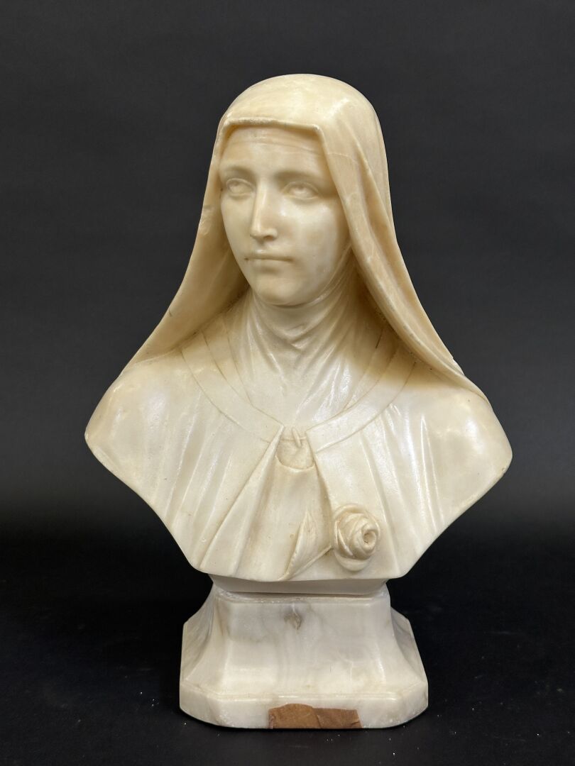 Buste de femme en tenue de veuve, sur socle (accidents aux bras, vendu en l’état).