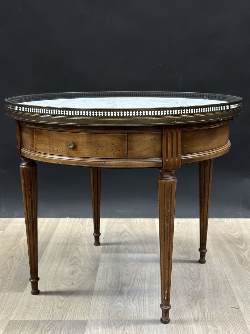 Table dite bouillotte formant table basse en bois verni ouvrant par deux tiroirs et deux tirettes...