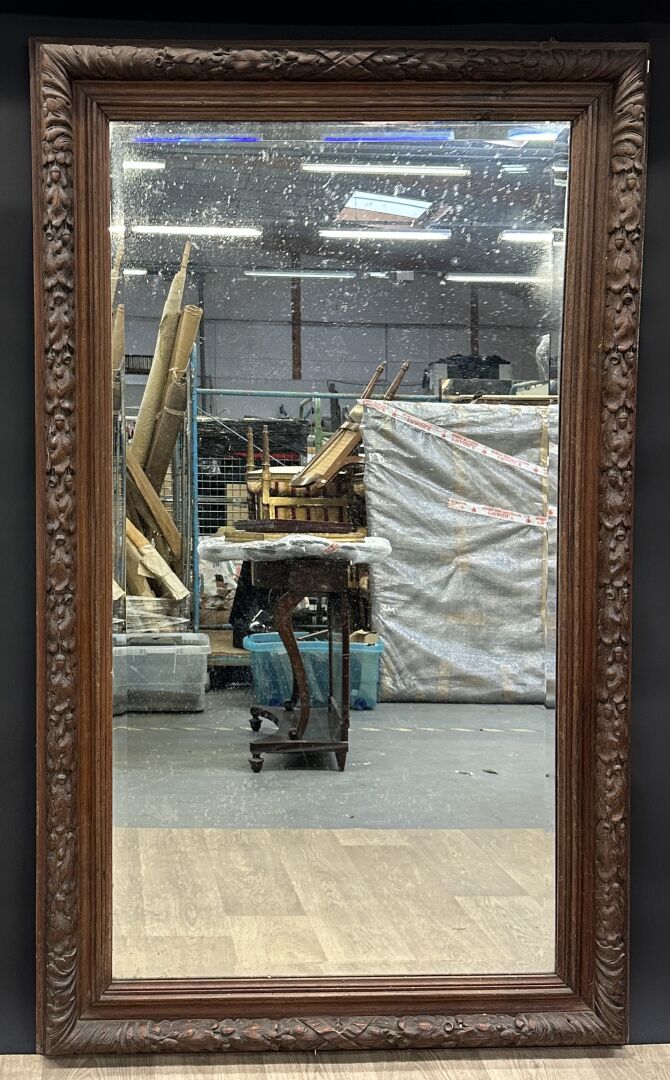 Miroir biseauté dans un cadre en bois naturel sculpté de feuilles de chêne.
