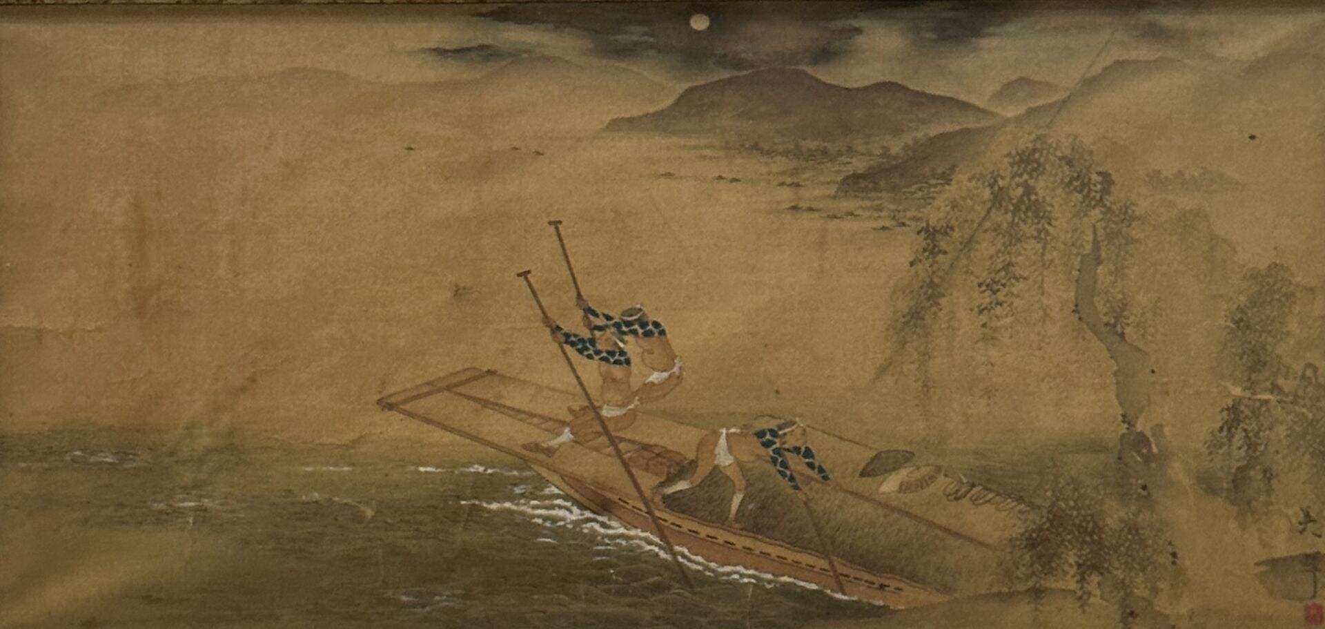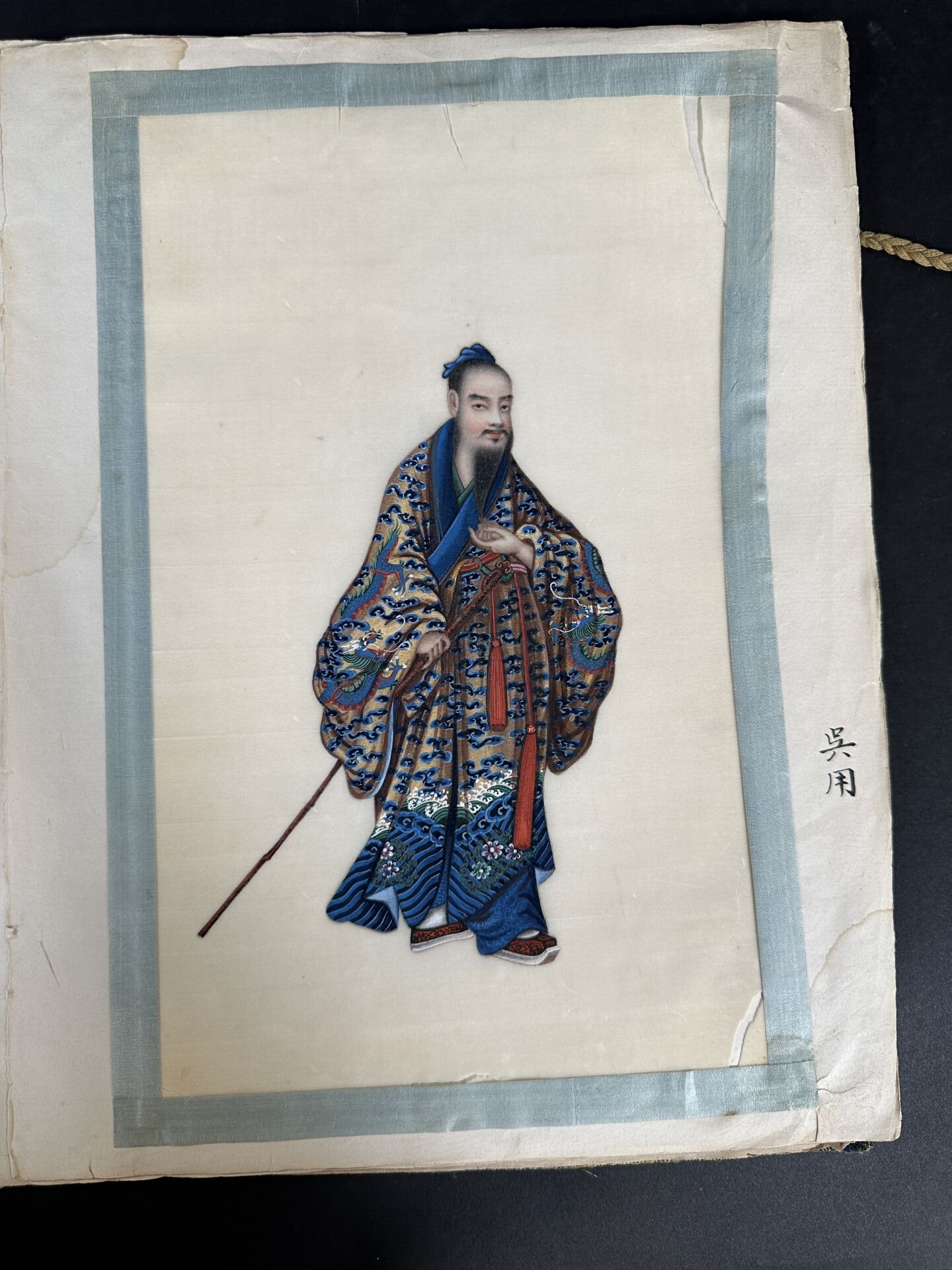 Suite de trois gouaches figurant des guerriers sur papier de riz (trous).
