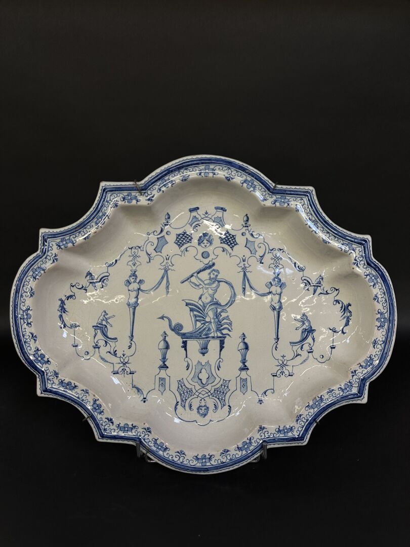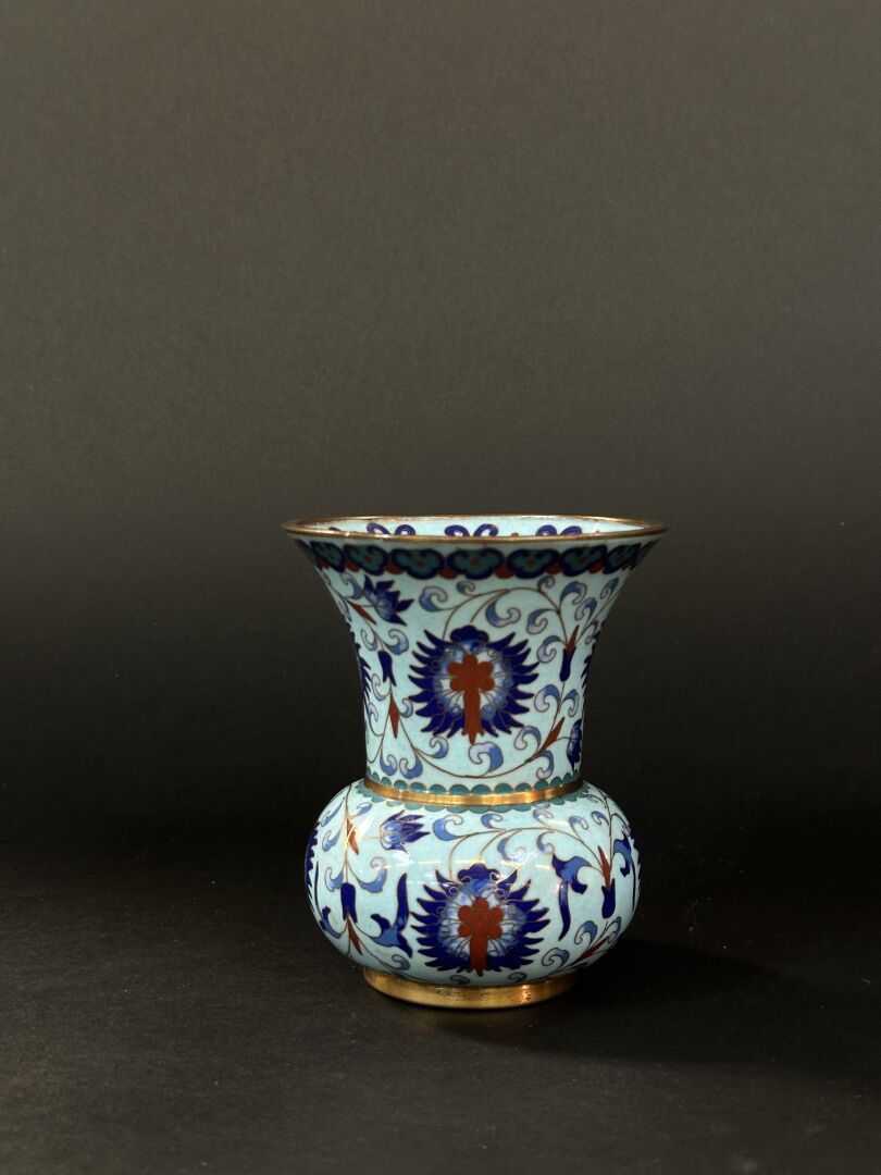 Crachoir en émaux cloisonnés dans les tons bleus à décor de rinceaux feuillagés et...