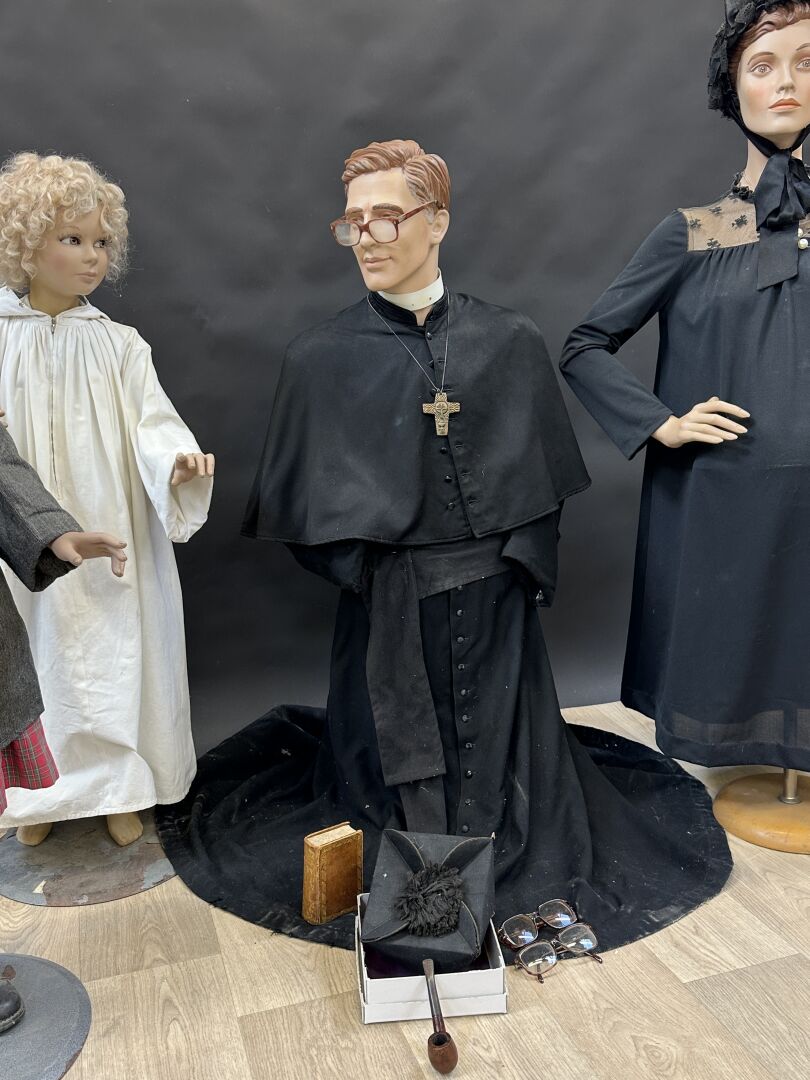 Buste d’homme en soutane avec accessoires, sur socle (accidents, evendu en...