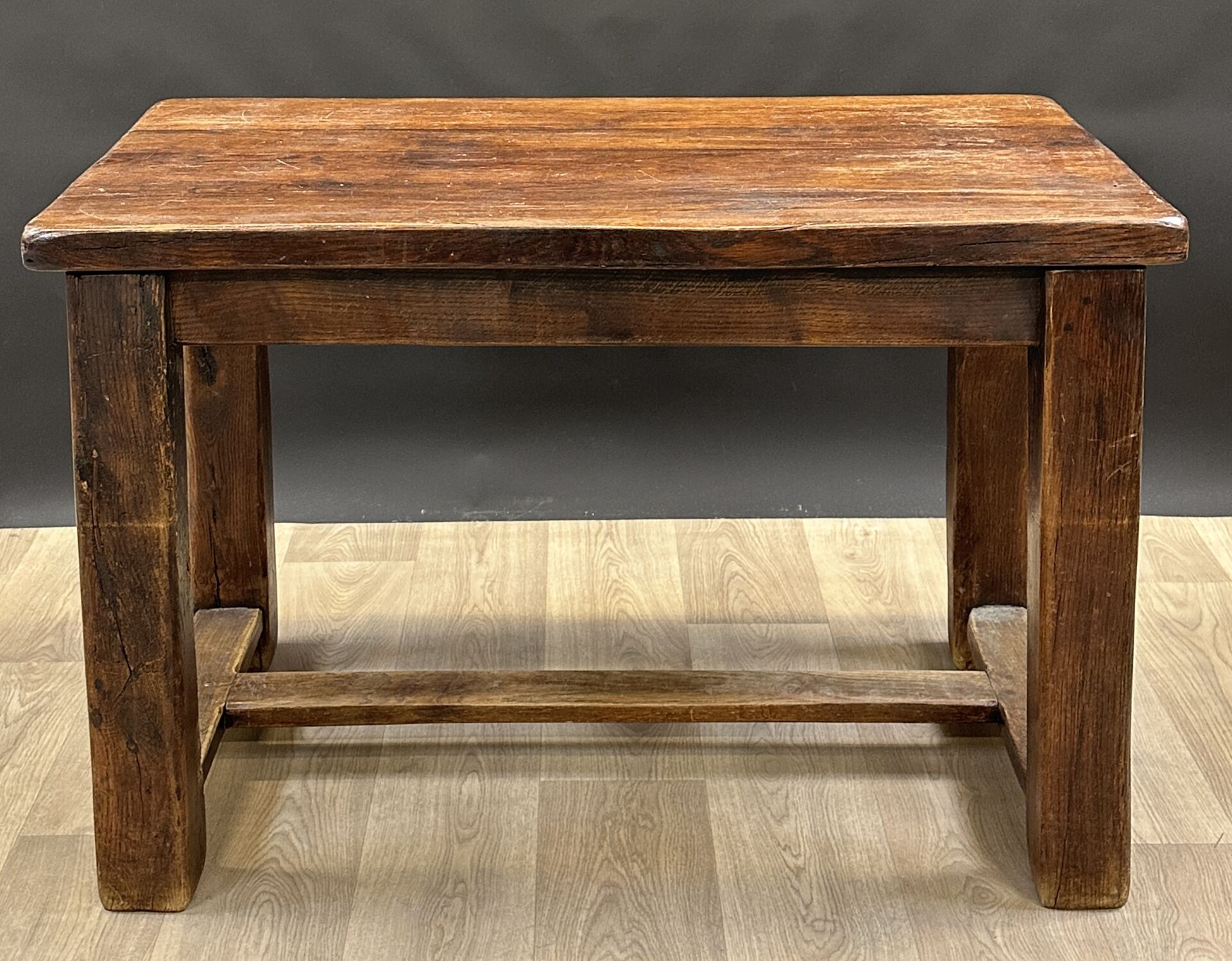 Table dite de ferme en bois, le plateau rectangulaire amovible, repose sur quatre pieds droits...