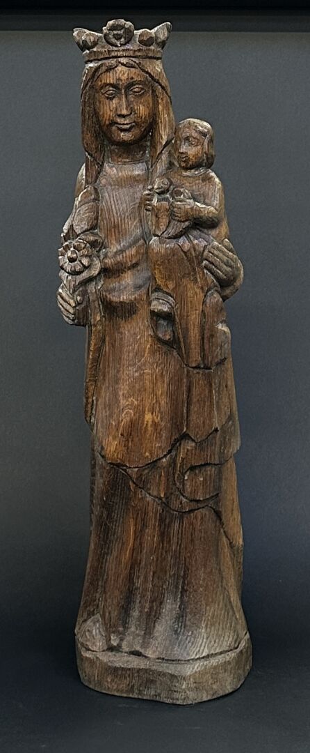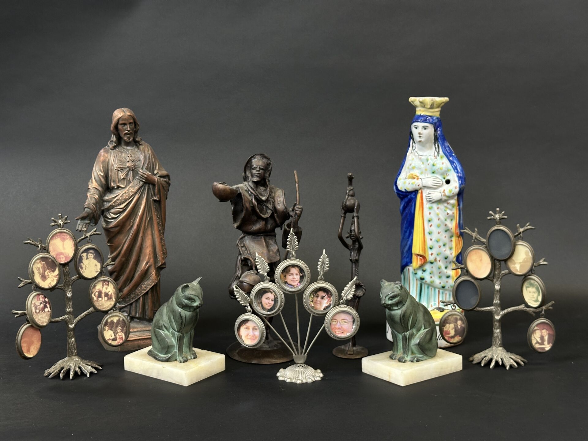 Réunion d’objets de décoration comprenant deux statuettes africaines, une Vierge en...