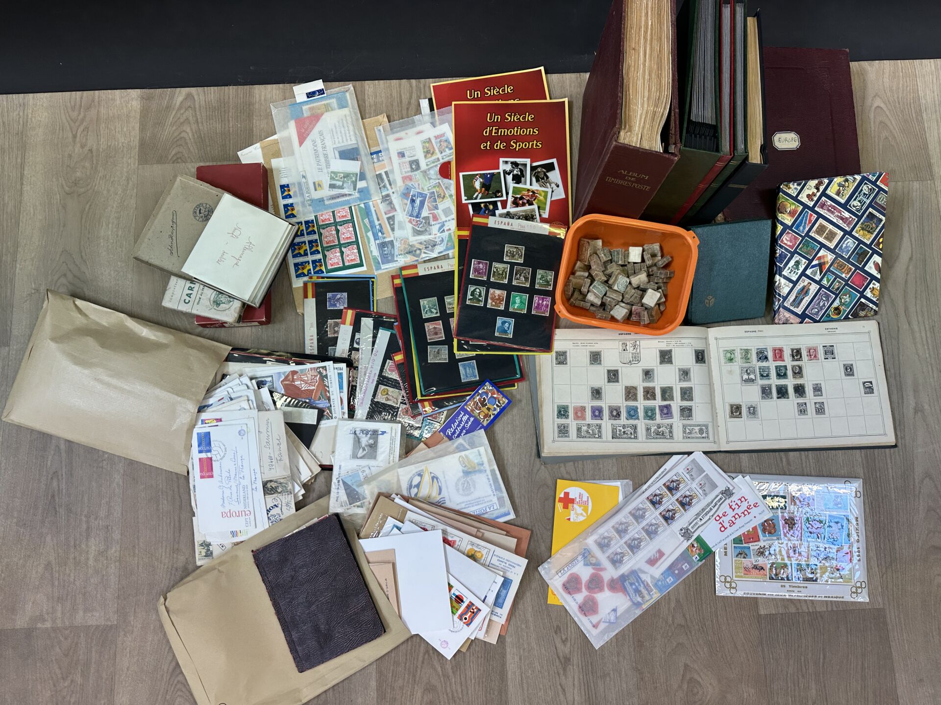 Fort ensemble de timbres dont albums France, Europe et Outre-Mer et nombreux timbres France...