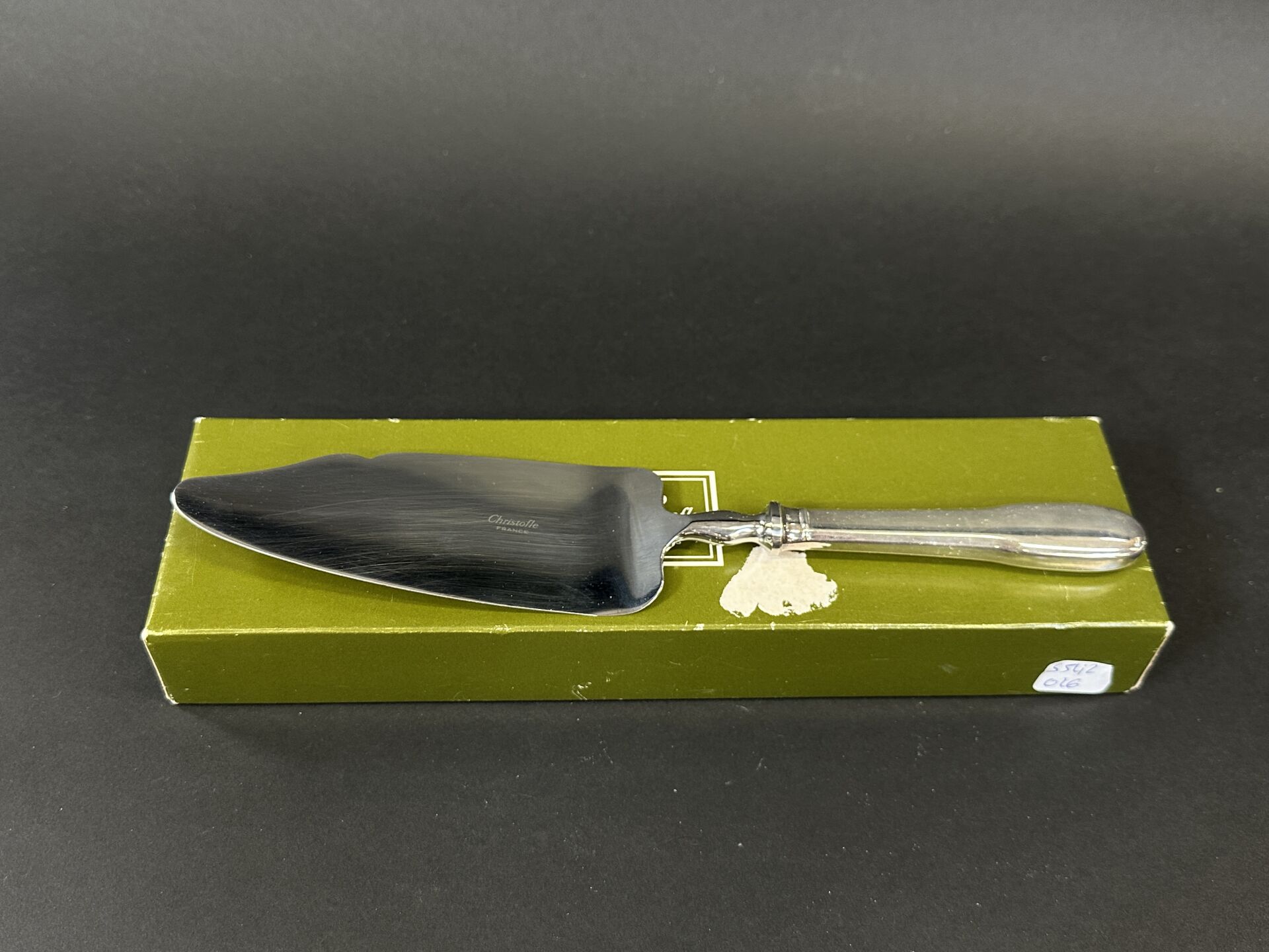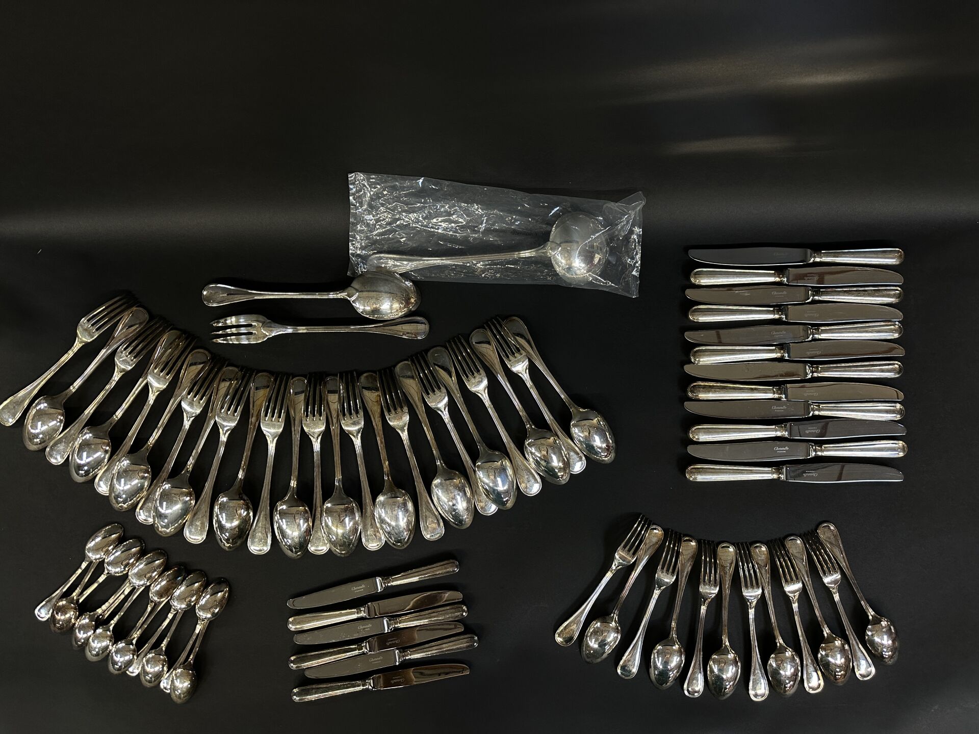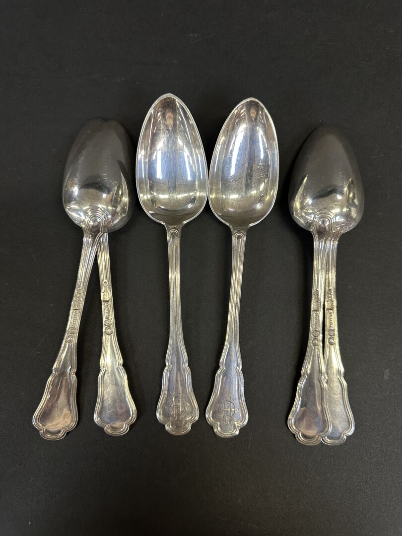 Suite de six cuillères en argent, modèle à filets, manche trilobé monogrammé EH.