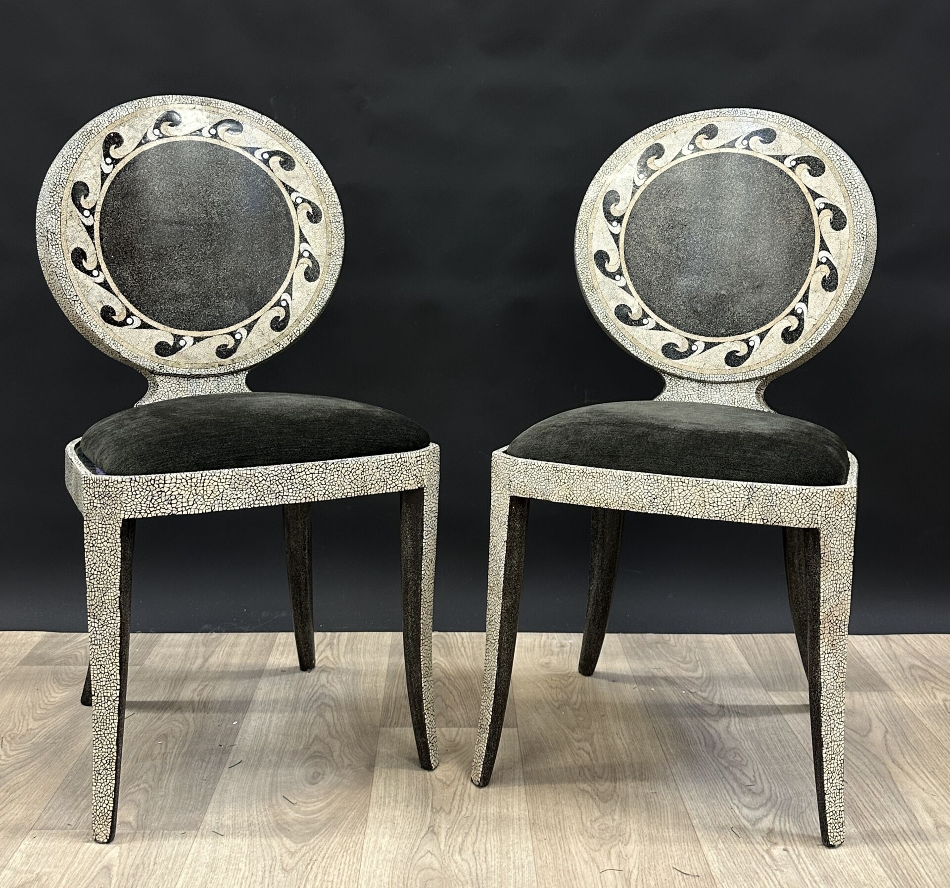 Paire de chaises à dossier médaillon, à décor en mosaïque d’un soleil rayonnant (petit...