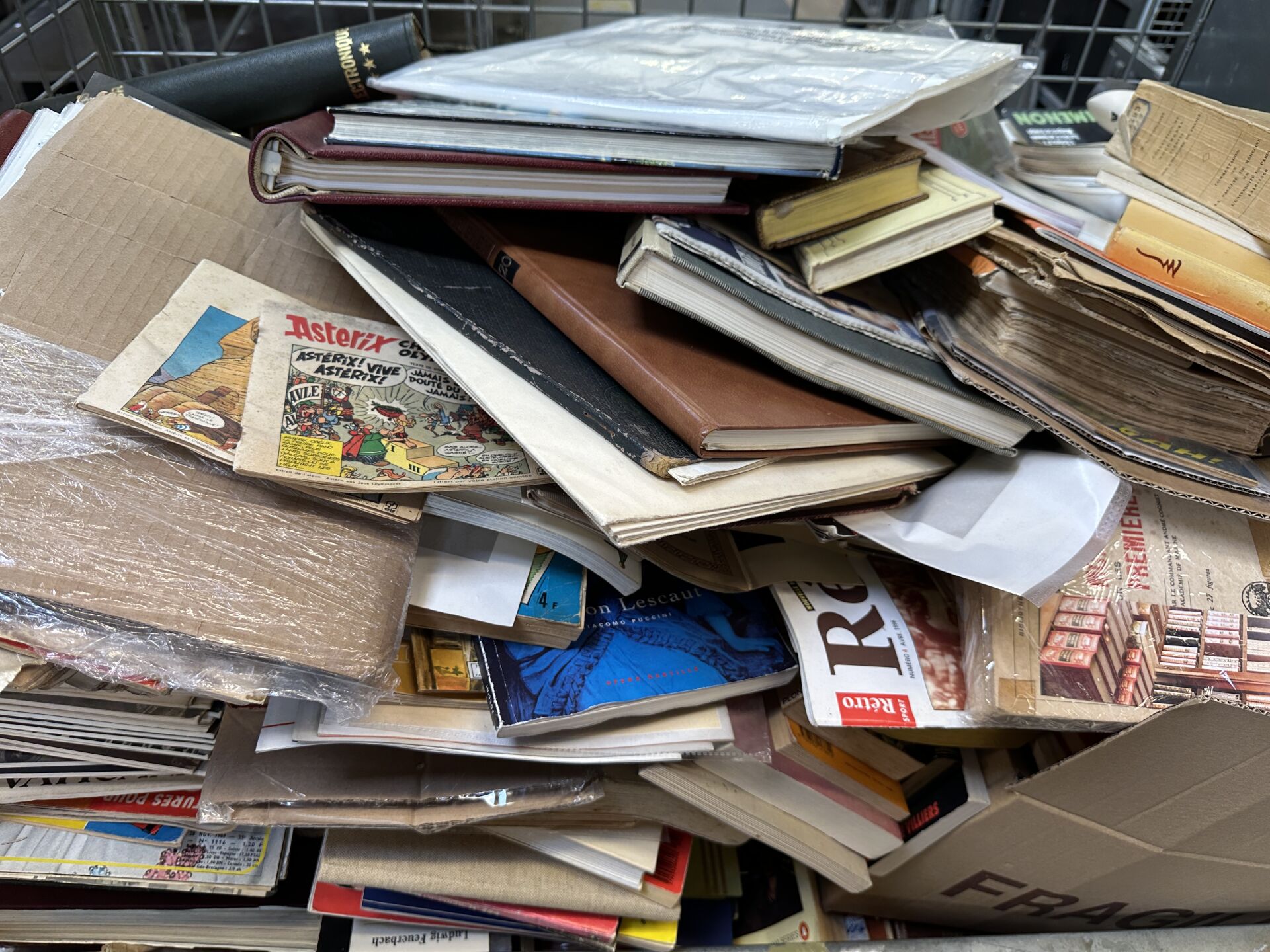 Environ 1m3 de livres reliés et brochés, magazines, livres pour enfant (en l’état, à...