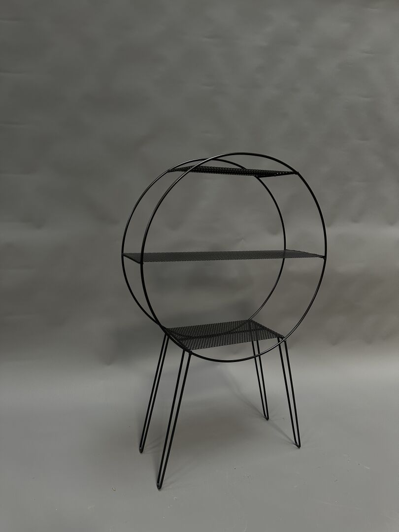 Etagère en encoignure en placage d’acajou, à fond de glace, ouvrant par un tiroir en...