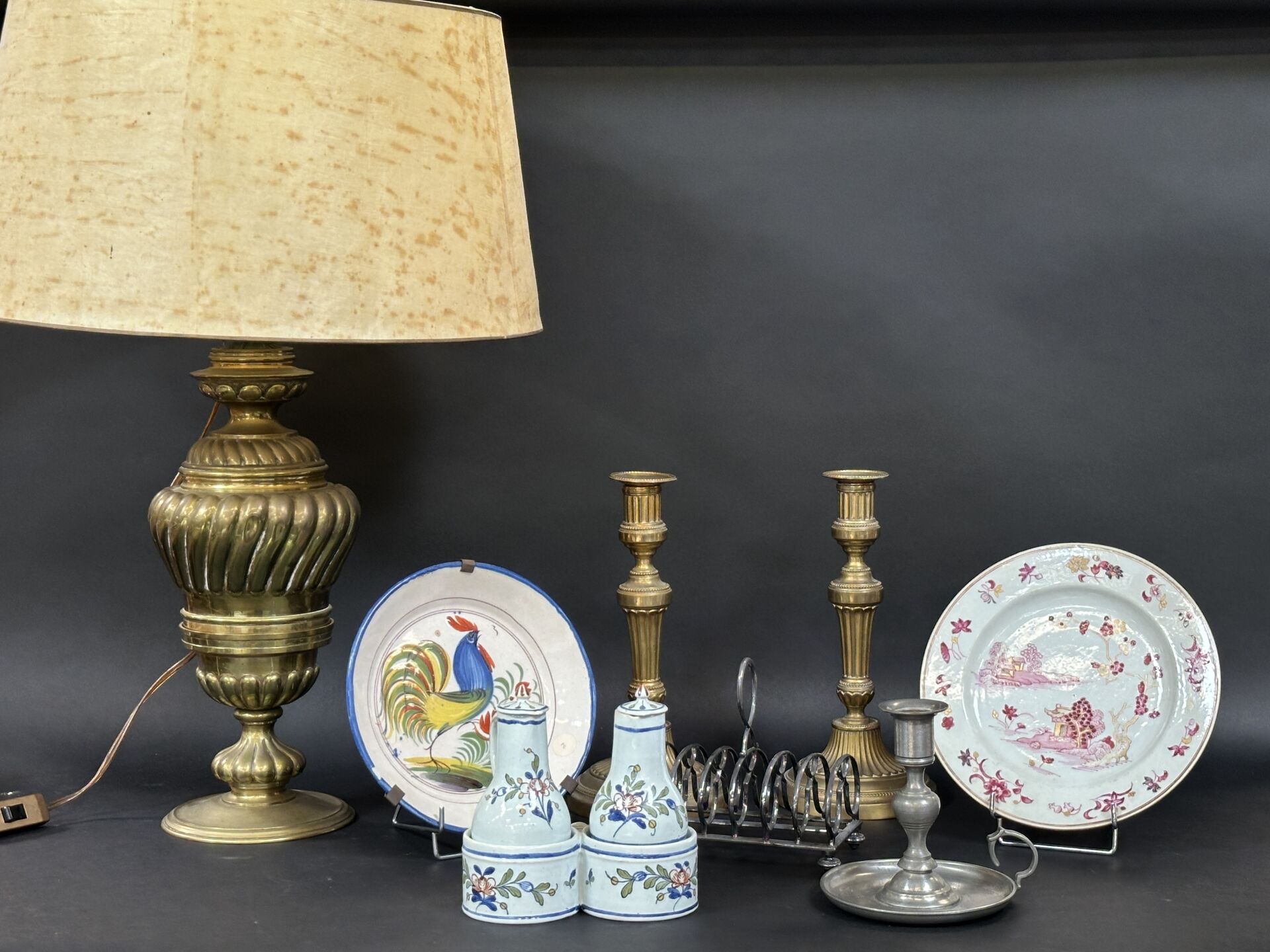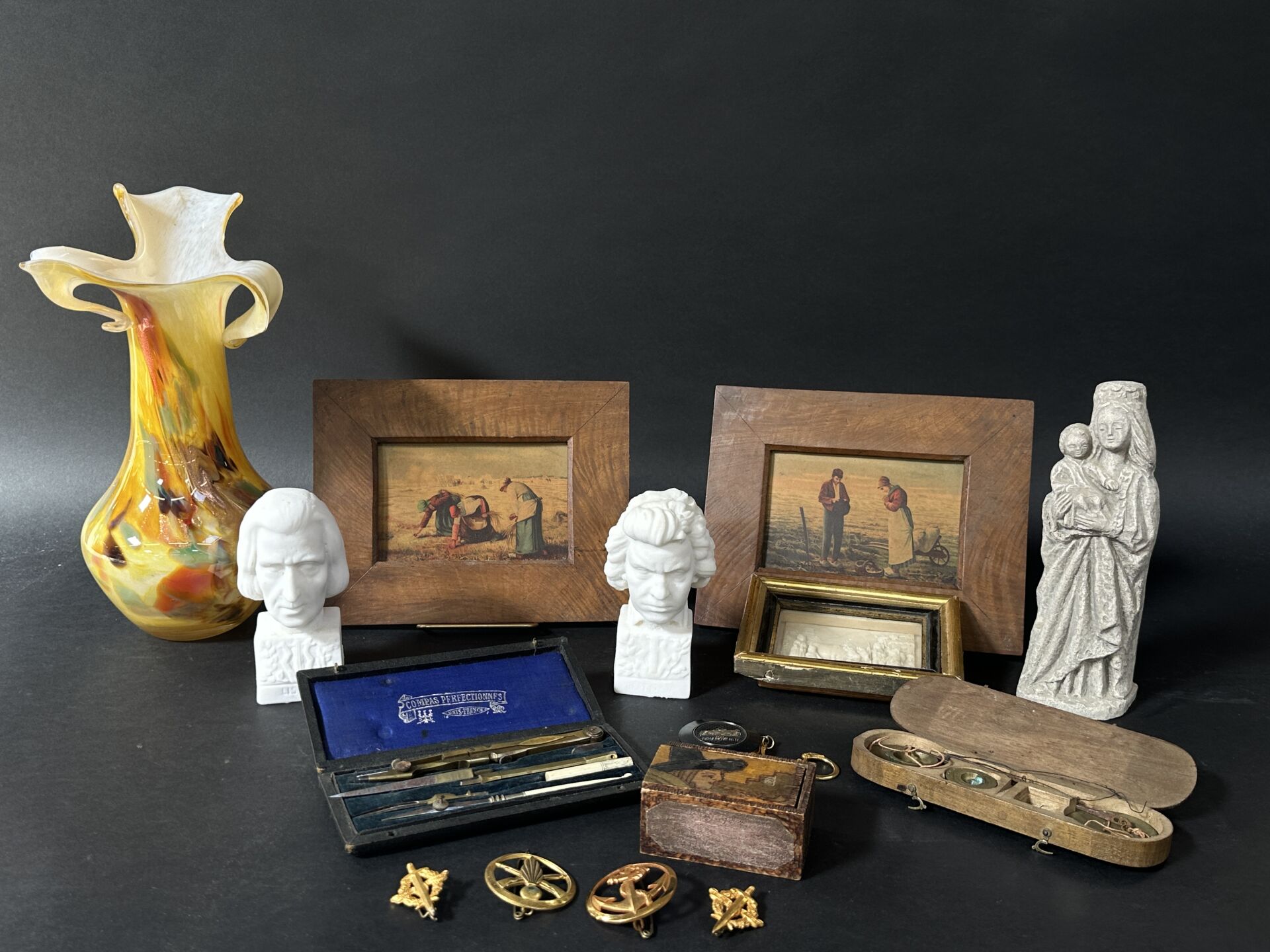 Ensemble d’environ 1m3 d’objets, bibelots et petit mobilier de brocante et...