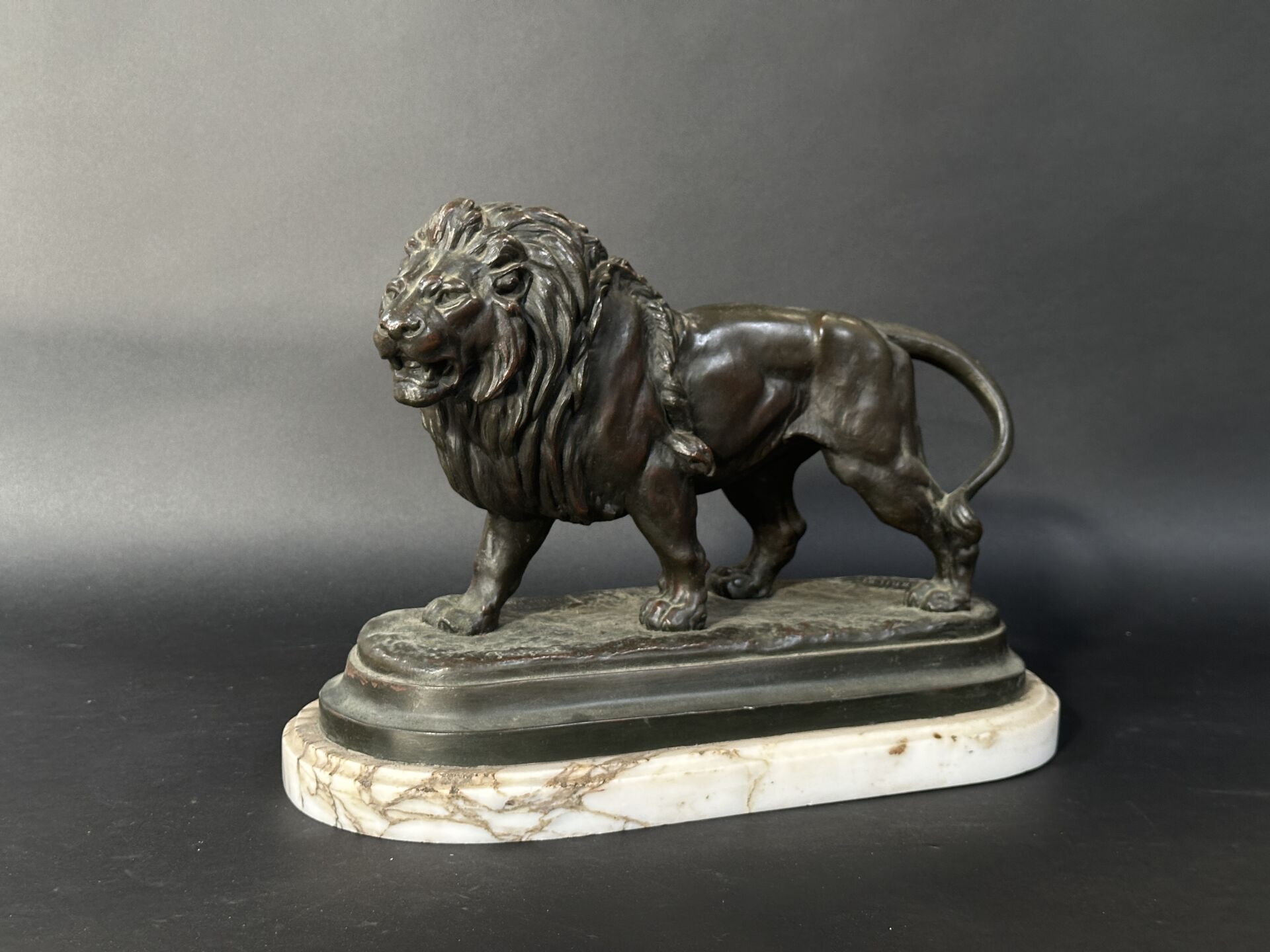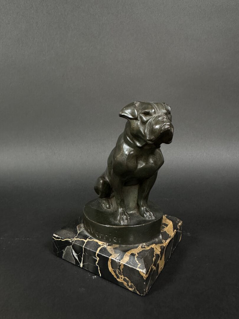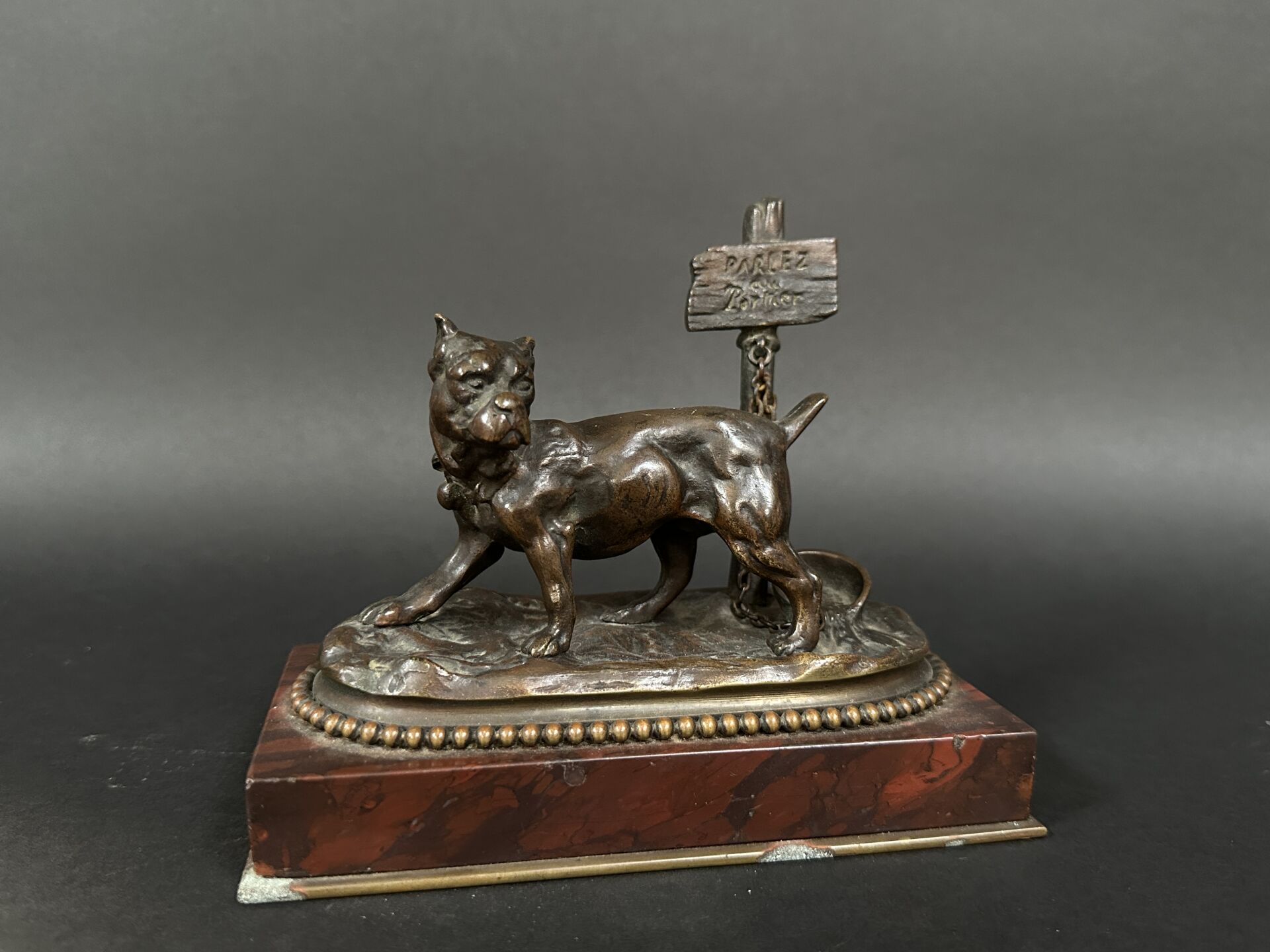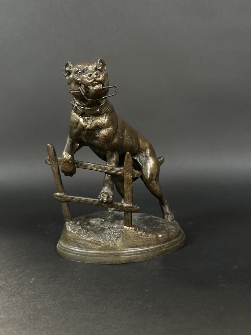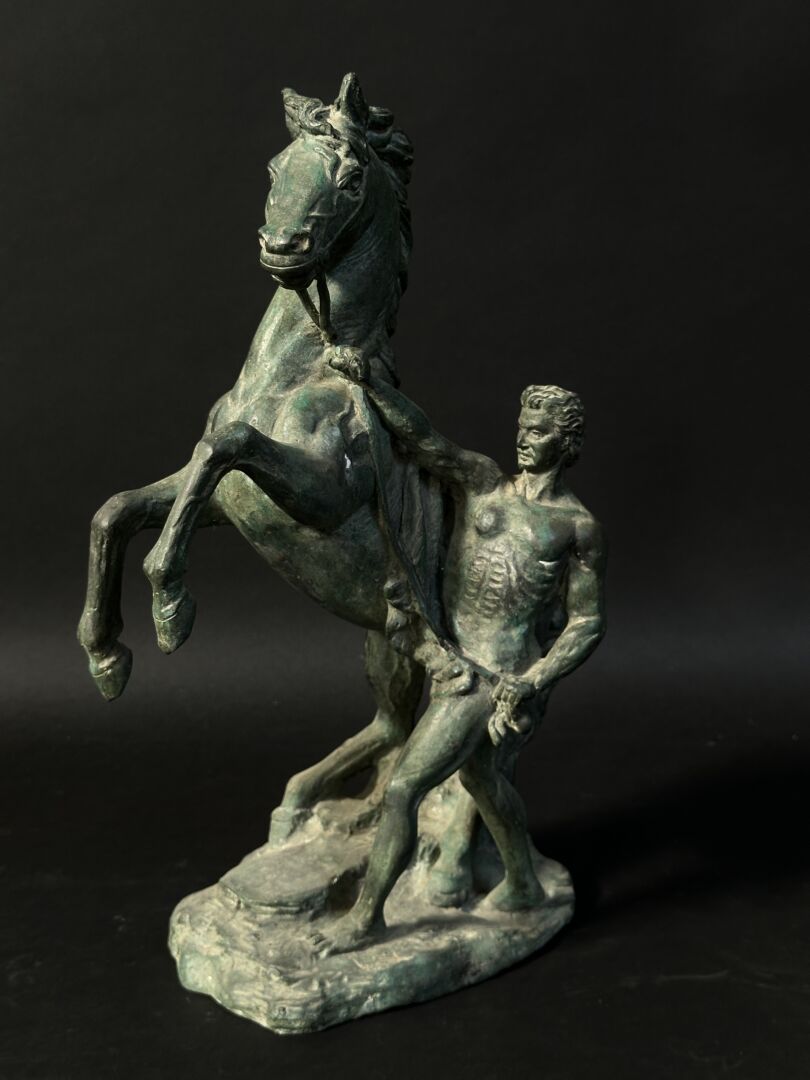 Sujet en bronze à patine brune figurant un homme tenant une perche et un seau mobile (usures à...