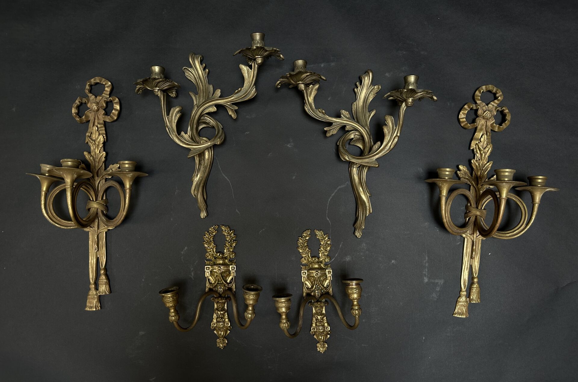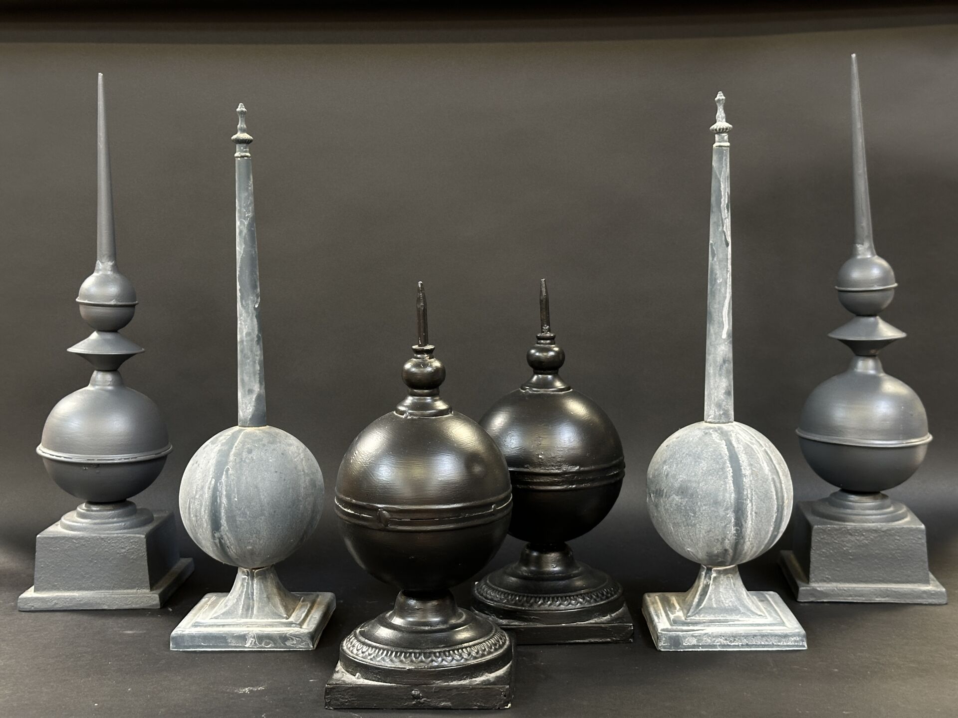 Réunion de trois paires d’épis de faîtage en métal laqué gris ou noir.