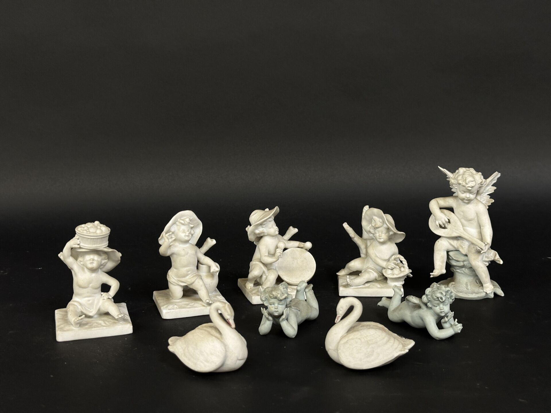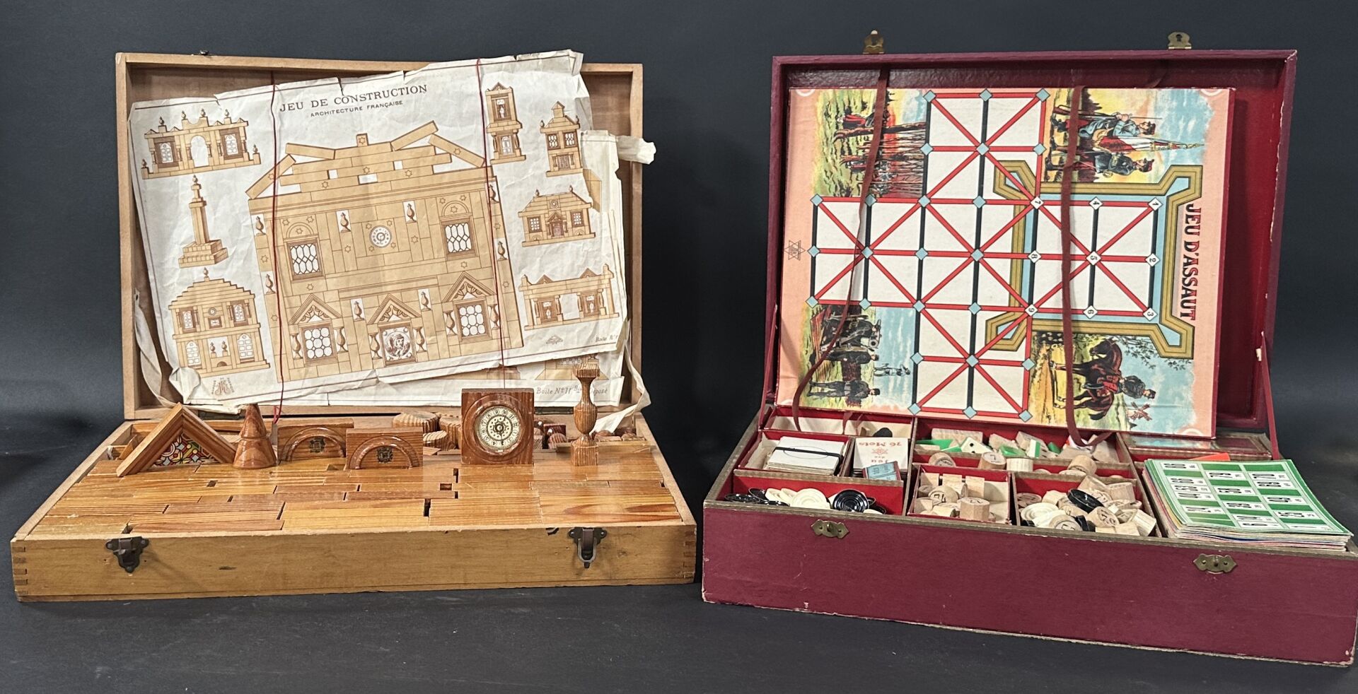 Réunion de neuf boîtes contenant des soldats miniatures, animaux et véhicules à monter.