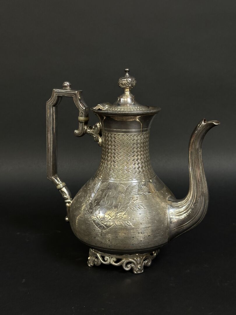 Lampadaire en laiton doré à décor ciselé en partie ajouré de rinceaux et calligraphie...