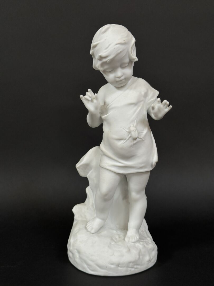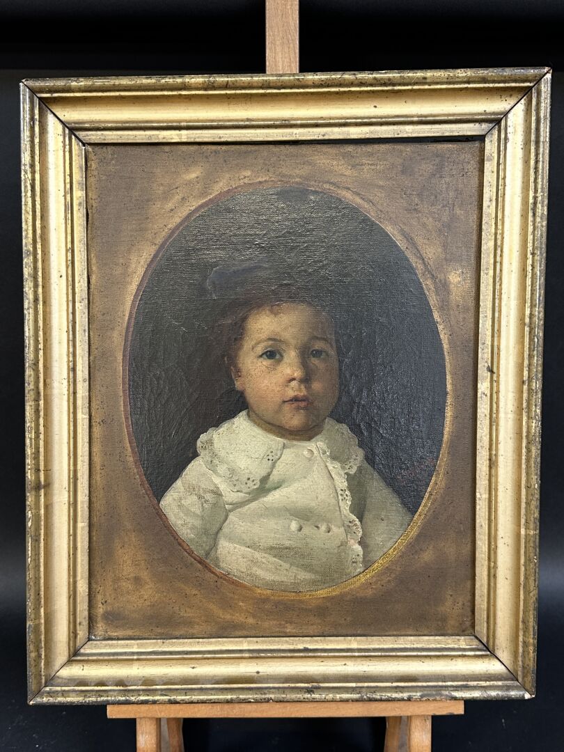 Poupée ancienne, la tête en composition peinte, vêtue d’une robe de mariée, voile et...