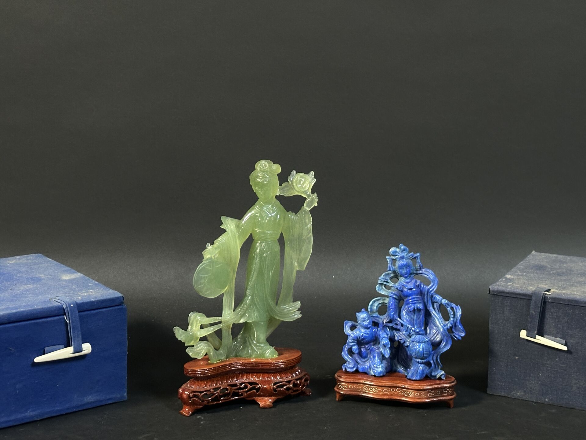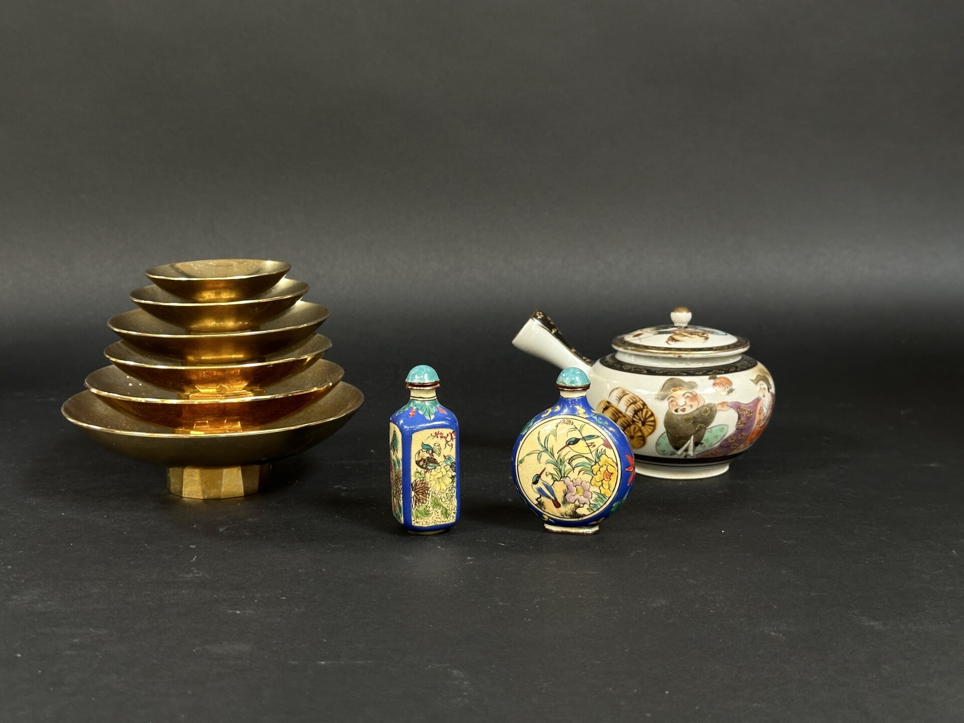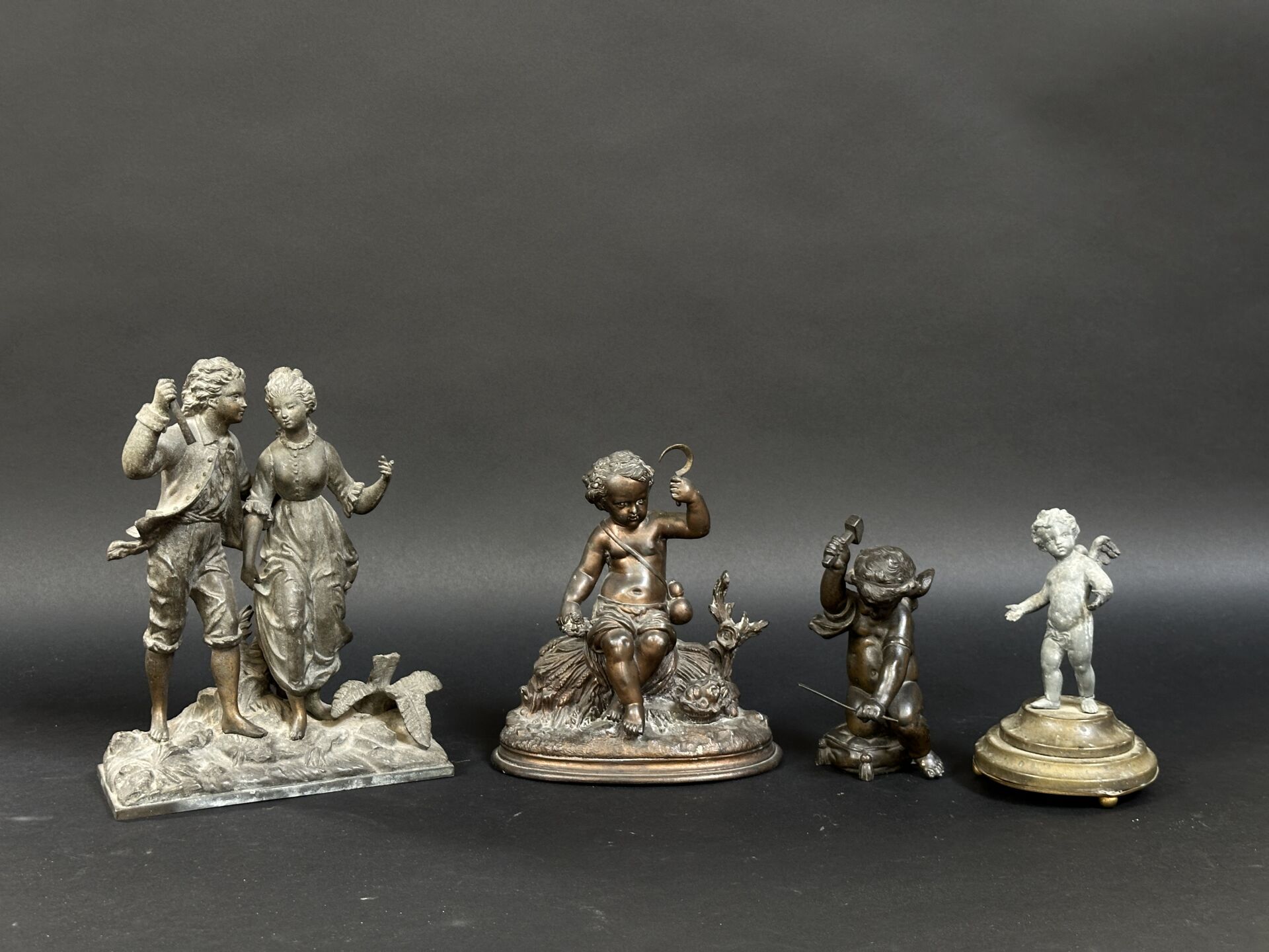 Réunion de sept objets décoratifs d’Asie, en bronze ou métal dans le style archaïque...