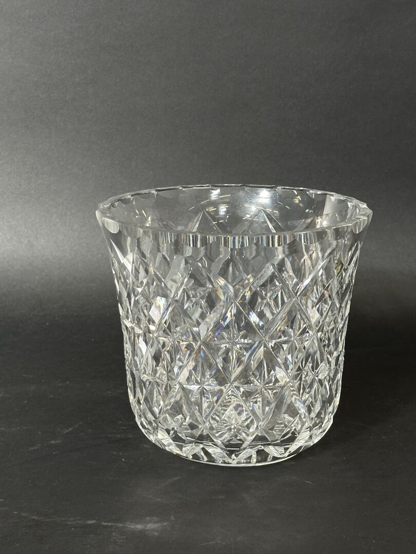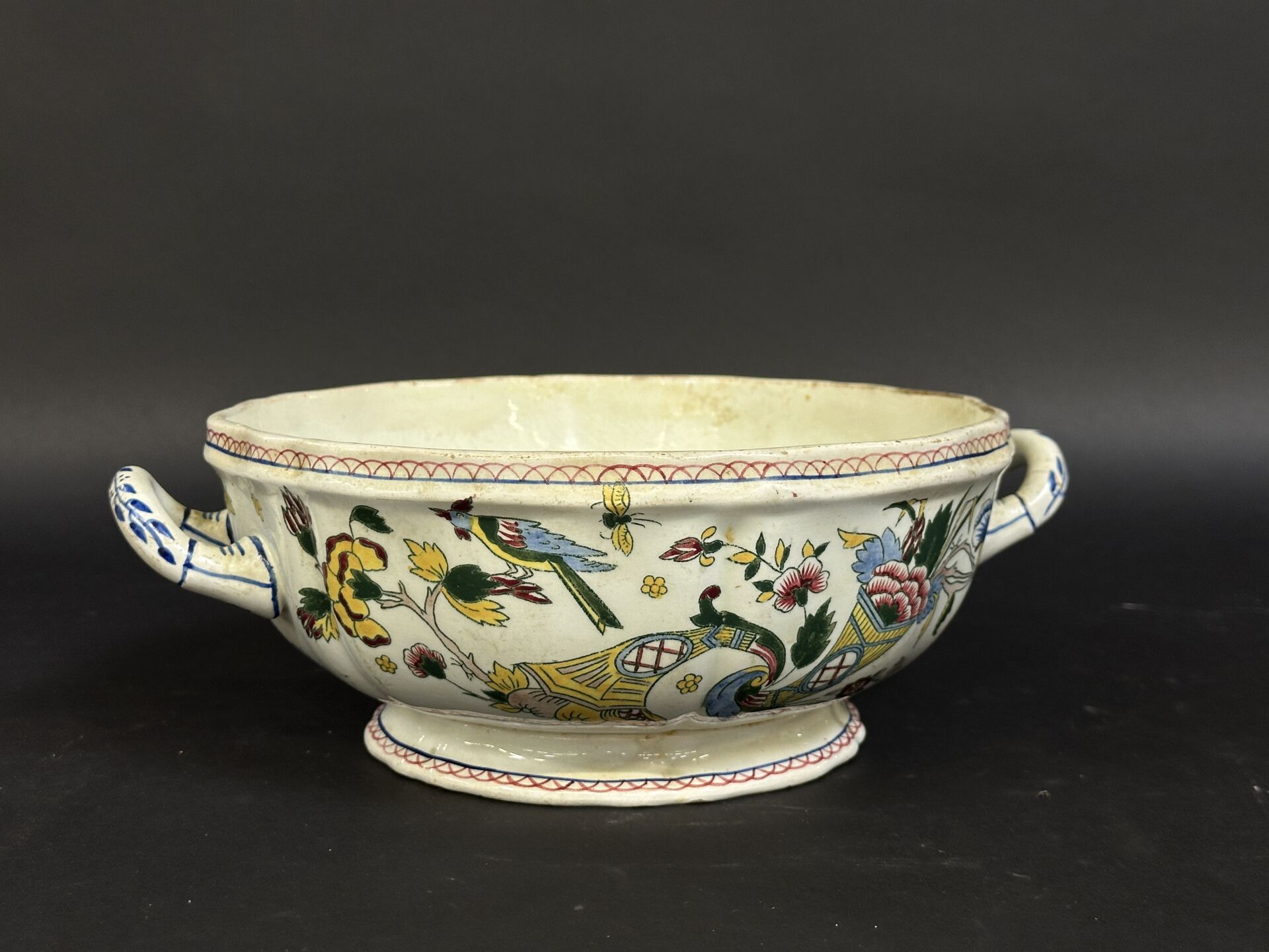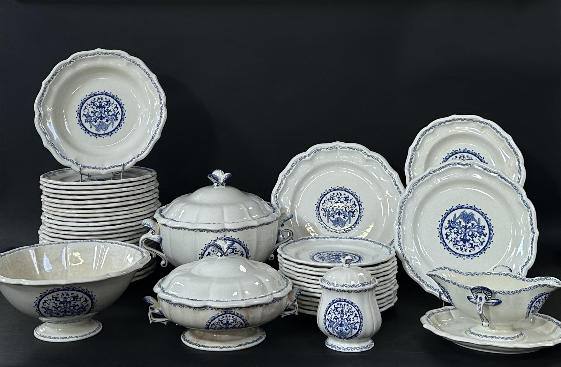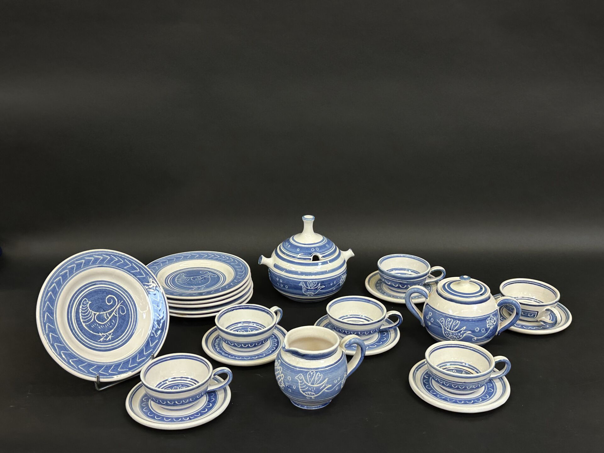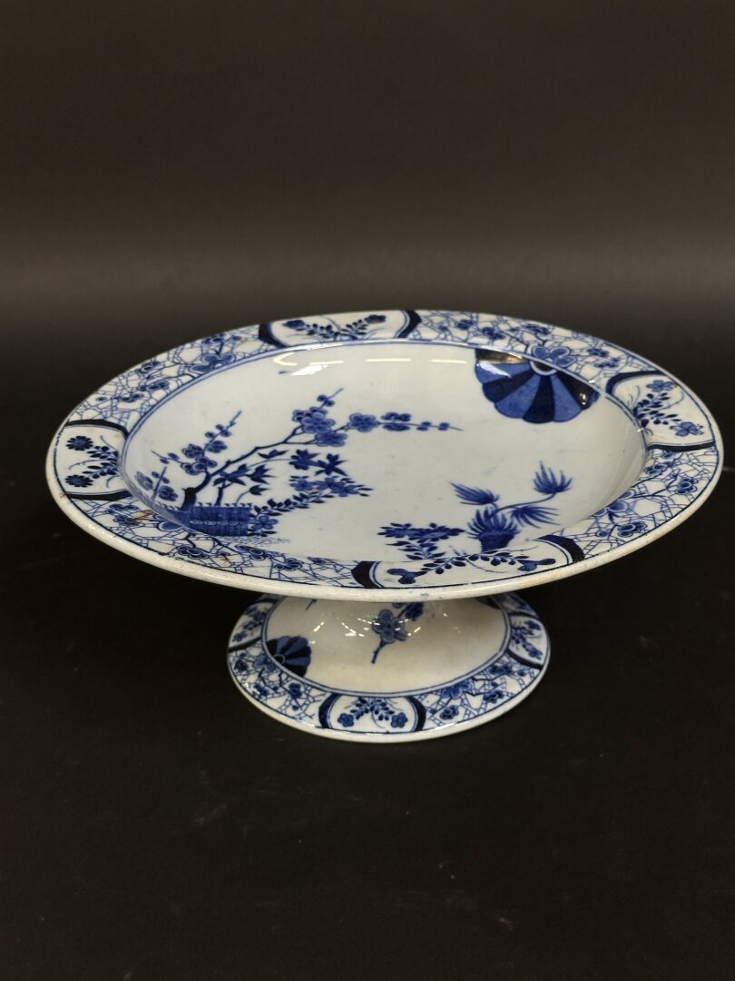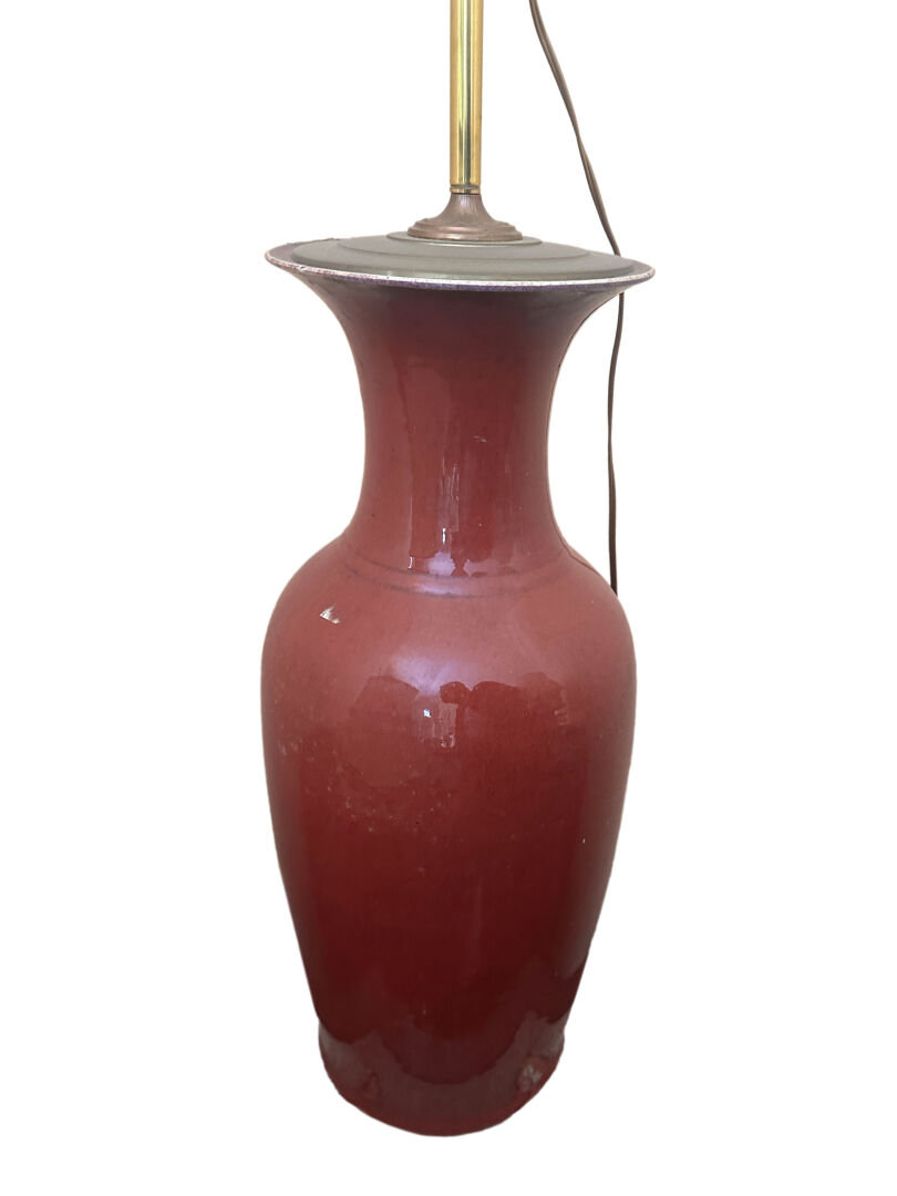 Vase à panse ovoïde en céramique à décor bleu de motifs géométriques (accidents, monté en...
