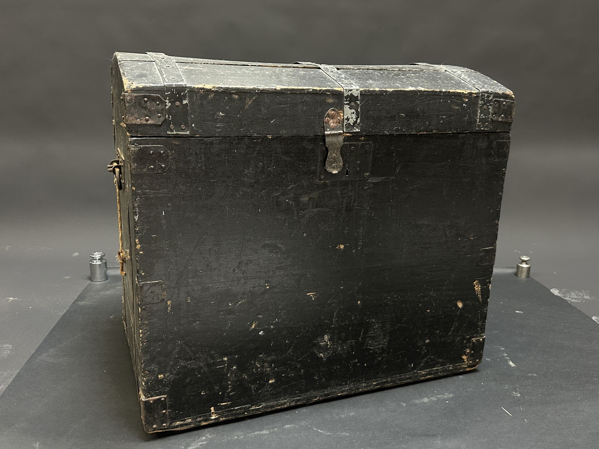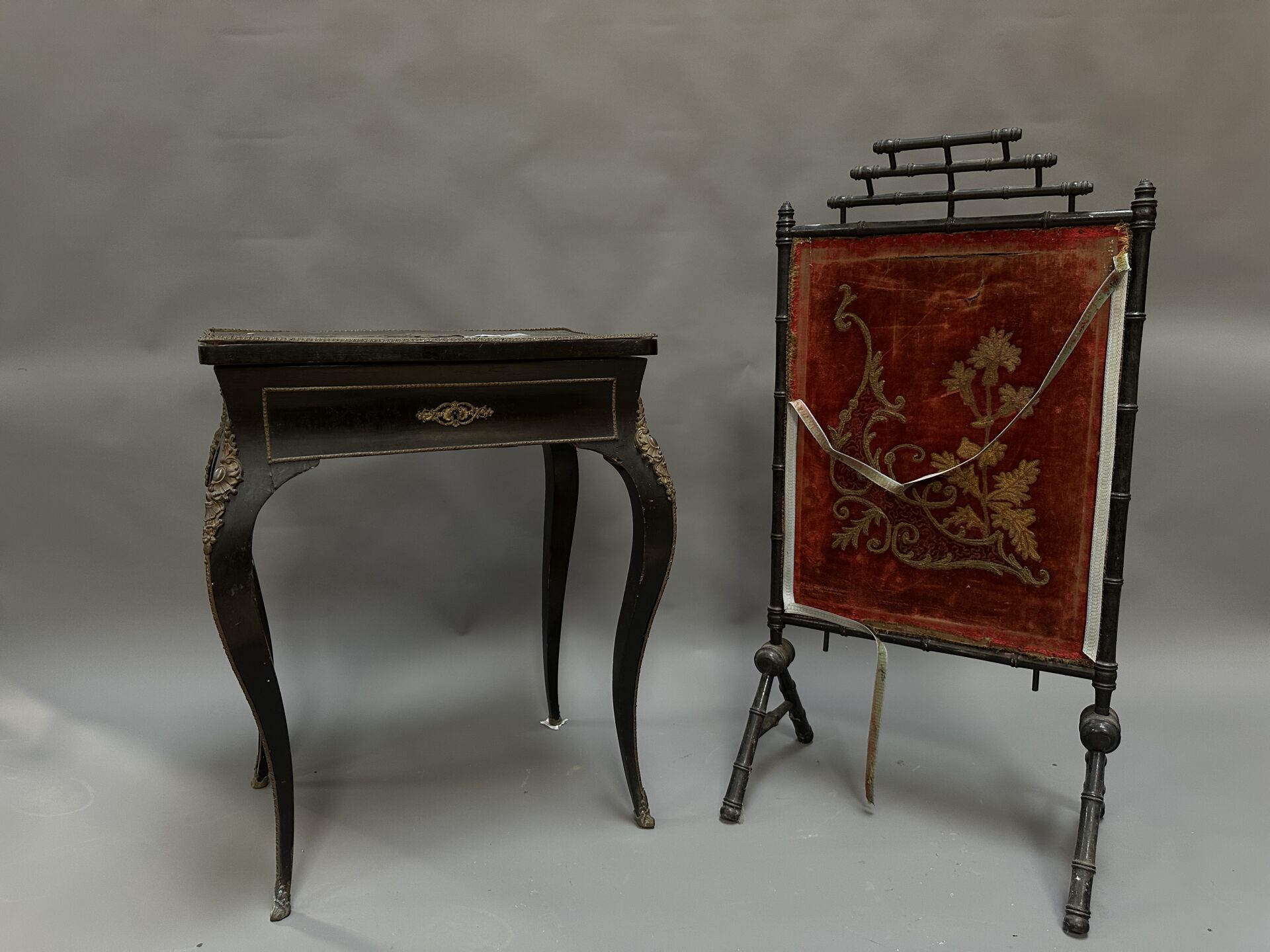 Commode arbalète en bois laqué noir ouvrant par quatre tiroirs, repose sur quatre pieds...