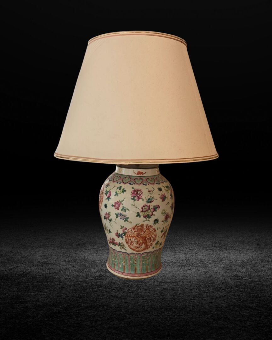 Vase couvert en porcelaine famille verte. De forme balustre, à décor de phénix en vol parmi...